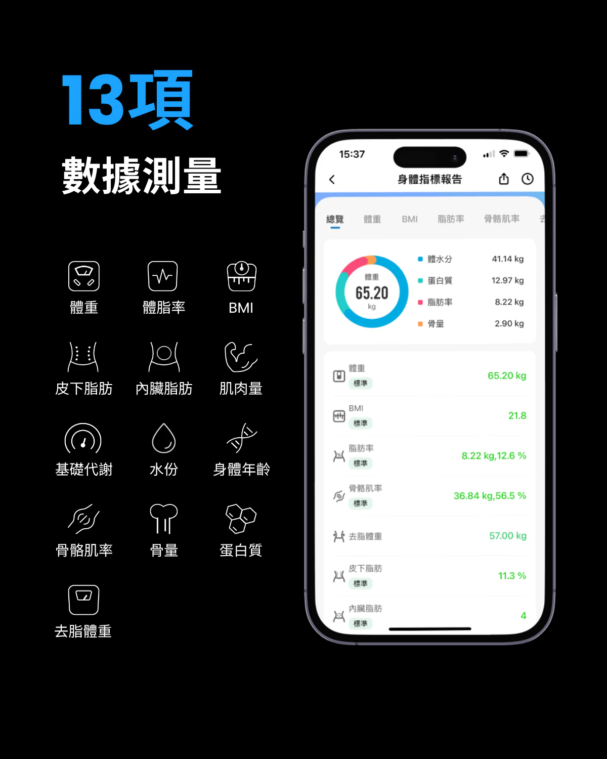 .可追蹤13種身體組成數據