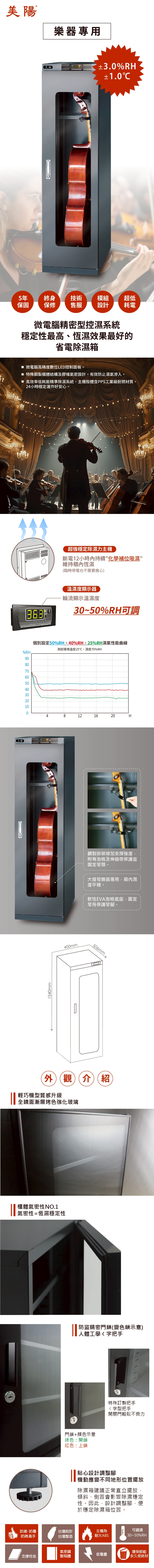 - 化學吸濕補位控濕系統,斷電後12小時仍可維持濕度