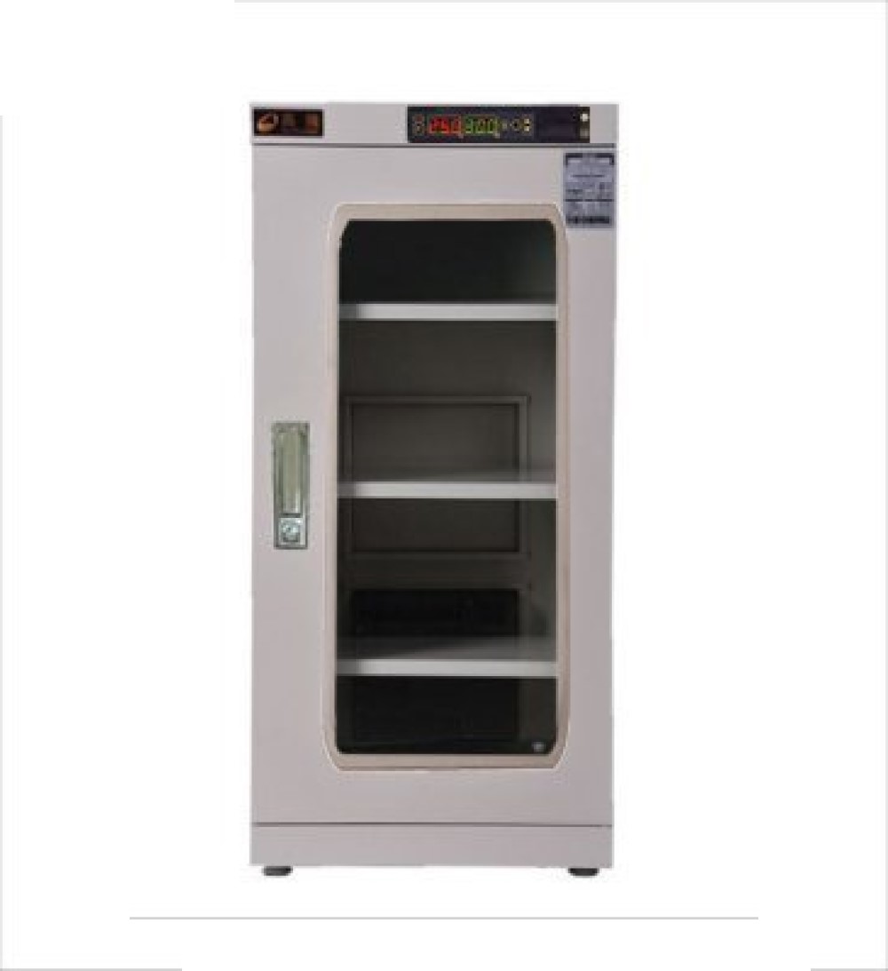 LED微電腦溫濕度顯示器◎溫度、濕度同步顯示 ◎可調整濕度值15~50%RH ◎溫度顯示精度±1℃ ◎濕度顯示精度±3%RH | UL、CE安規認證工業級除濕主機◎PPS防火塑材主機耐熱達230℃ ◎電流電壓過大自動斷電機制 ◎通過CE國際認證 ◎12 小時斷電,仍能繼續"化學補位吸濕"使濕氣不上升 ◎採"水蒸氣平衡原理"之除濕方式 ◎以微程式控制,可分離式維修設計 ◎無噪音、不滴水、不結霜等優勢 | 台灣製造精密櫃體◎重疊式鋼鐵結構,高強度氣密工法 ◎門邊採磁性膠條加強氣密效果,視窗玻璃使用一體成型塑框設計,防漏氣,可直接加掛置物盒,物料進出管理更方便 | 可調式高載重層板 |