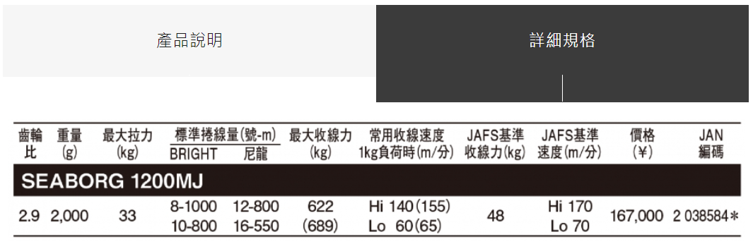 DAIWA底棲深場怪物電捲SEABORG 1200MJ