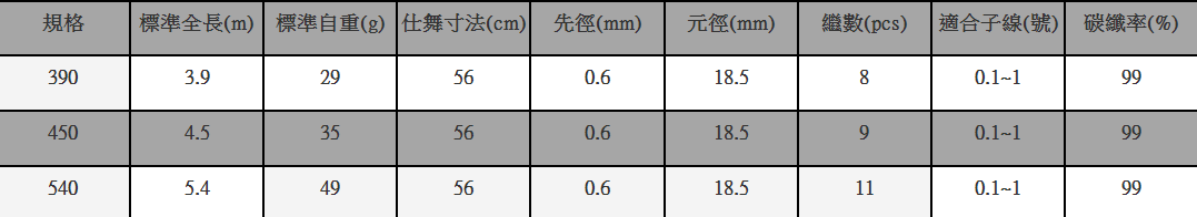 先調的特色顯露得極為清晰, 極輕的重量. 想當然操作起來一定很稱心,揮竿、收線可以達到精準無比的程度;大幅漸縮的握把,看起來弧線優美、用起來手感卓越,伸縮設計便利高,重心穩不垂尾.持久手部也不會造成負擔.是一把溪釣不可或缺的好竿。