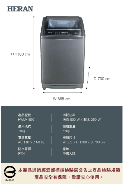 最大洗衣:18kg
