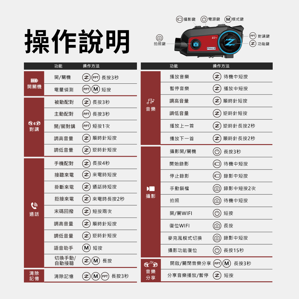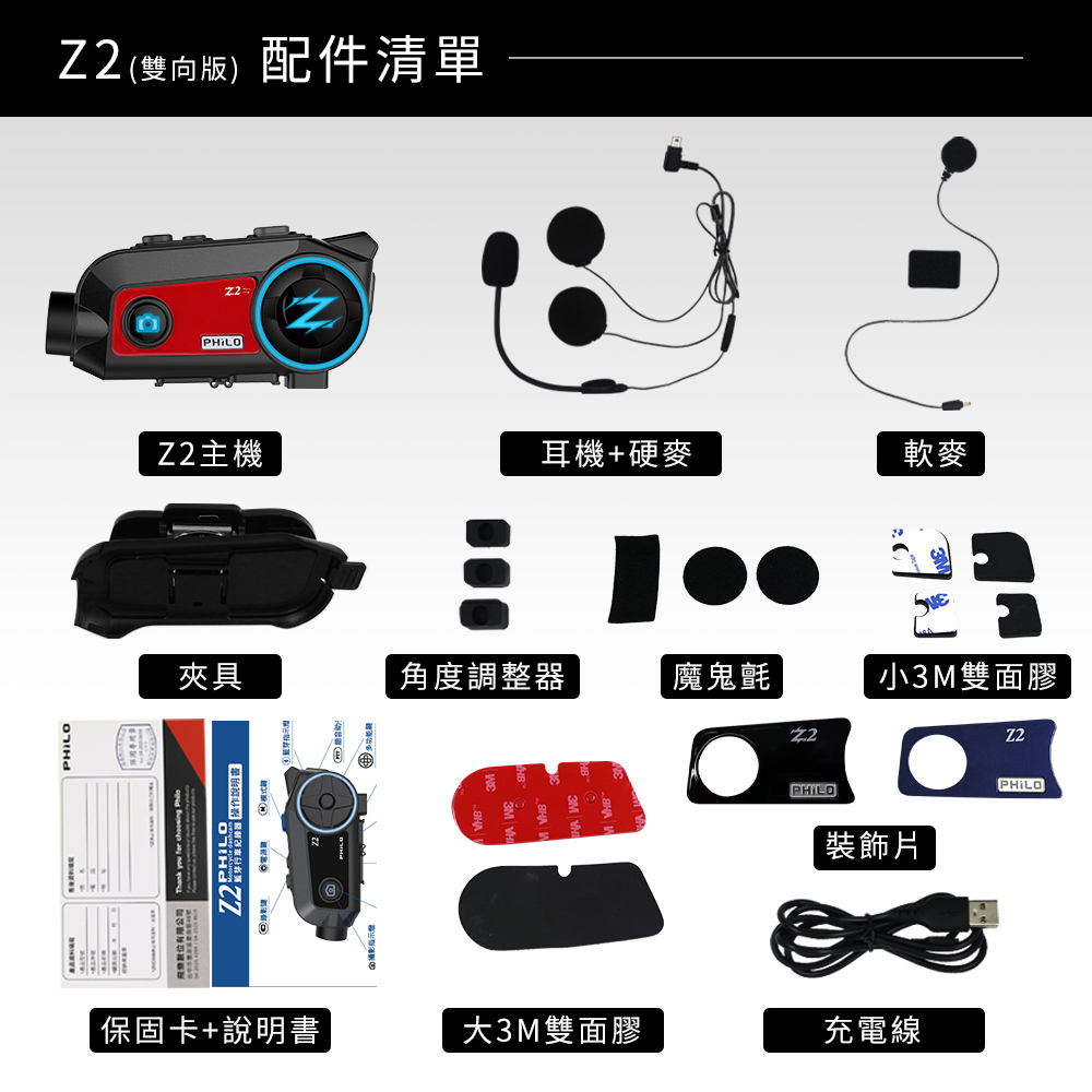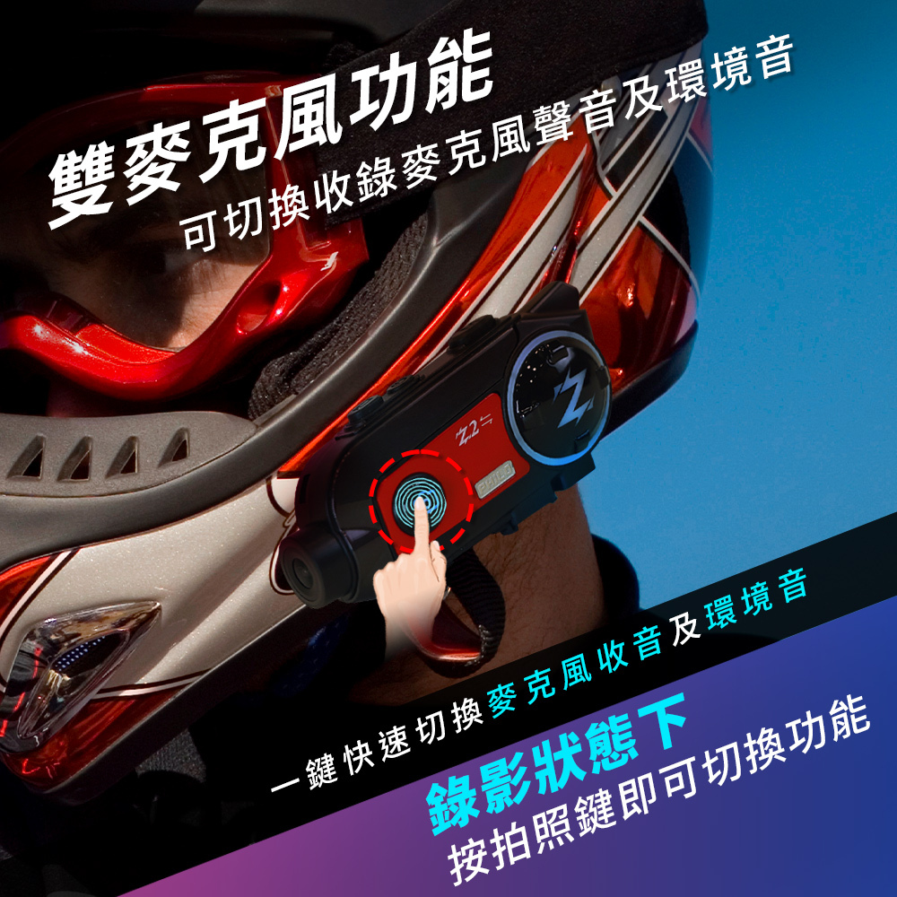 【全新升級雙向版】Z2錄影續航8小時藍芽行車紀錄器 👉全新升級雙向版!藍芽升級為主被動連線,雙人連線距離可達800公尺 ● 聯詠96672處理晶片 ● 1080P 30FPS高畫質 ● SONY335高清廣角鏡頭 ● 支援藍芽主被動連線,雙人對講距離可達800公尺,可與他牌連線 ● 充電3hr / 錄影7-8hr / 藍芽通話32hr / 超長待機500hr 神級續航 ● 電池容量2000mAh ● 數位降噪DSP+CVC ● 3種EQ音效 ● 雙麥克風 ● IP65級防塵防水 ● 可音樂共享 ● 最高支援128G記憶卡 ● 全新一代5.0藍芽 ● 支援邊充邊用 ● 內附兩片裝飾外殼 ● NCC:CCAP21LP3880T0