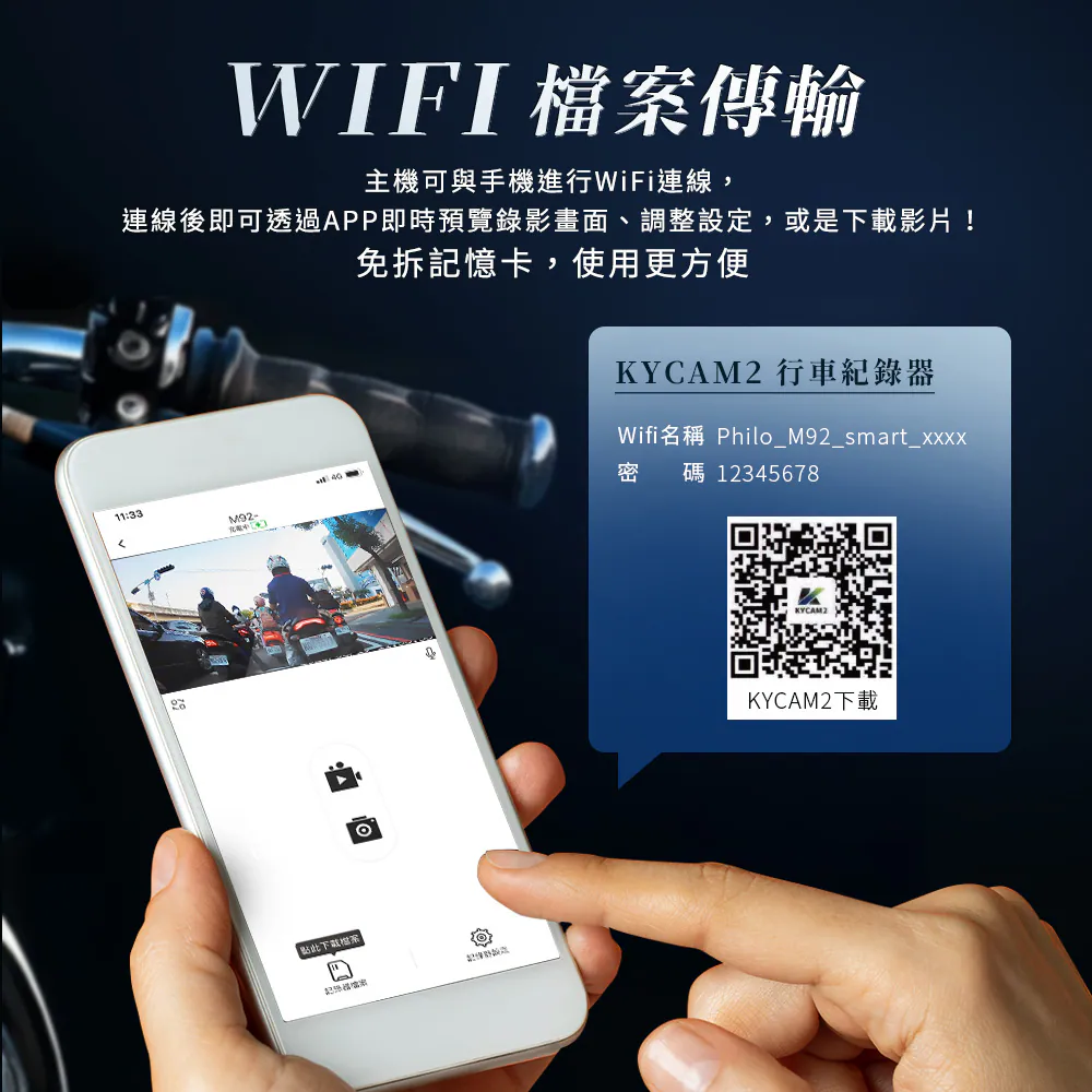 冰鷹M92smart 雙鏡頭機車行車紀錄器 無螢幕輕巧版【贈送64G記憶卡】 ●前後1080P高清畫質,前後130度大廣角 ●聯詠晶片+SONY鏡頭,帶來更好的畫面效果 ●前後皆使用全金屬IP67防水抗鏽鏡頭 ●鏡頭採用光學玻璃打造,抗變形、耐高溫不易霧化 ●搭配紅外線濾光片,有效阻擋多餘光干擾 ●採用超級電容,安全、耐高溫、使用壽命更長 ●多功能獨立控制器,Wifi連線、鎖檔、確認錄影狀態 ●TS碼流格式,G-sensor碰撞鎖檔,讓你行車更有保障 ●可設定1、2、3分鐘循環錄影,支援WiFi預覽/下載影片功能 ●支援ACC電源線供電與USB電源線供電,油車/電動車皆能安裝 ●專屬主機支架、防水寶馬頭、專業技師安裝 ●通過NCC、BSMI國家認證 ●原廠保固一年 NT$5,490 #安全帽 #全罩式安全帽 #復古帽 #飛行帽 #多元支付 #台中市購物節 #銀角無卡分期 #信用卡分期 #月付大人 #童帽 #雨衣 #手套 #車架 #無卡分期 #kyt #M2R #THH #Astone #zeus #SOL #NIKKO #EVO #NINJA #行車記錄器 #藍芽 #安全帽藍芽耳機