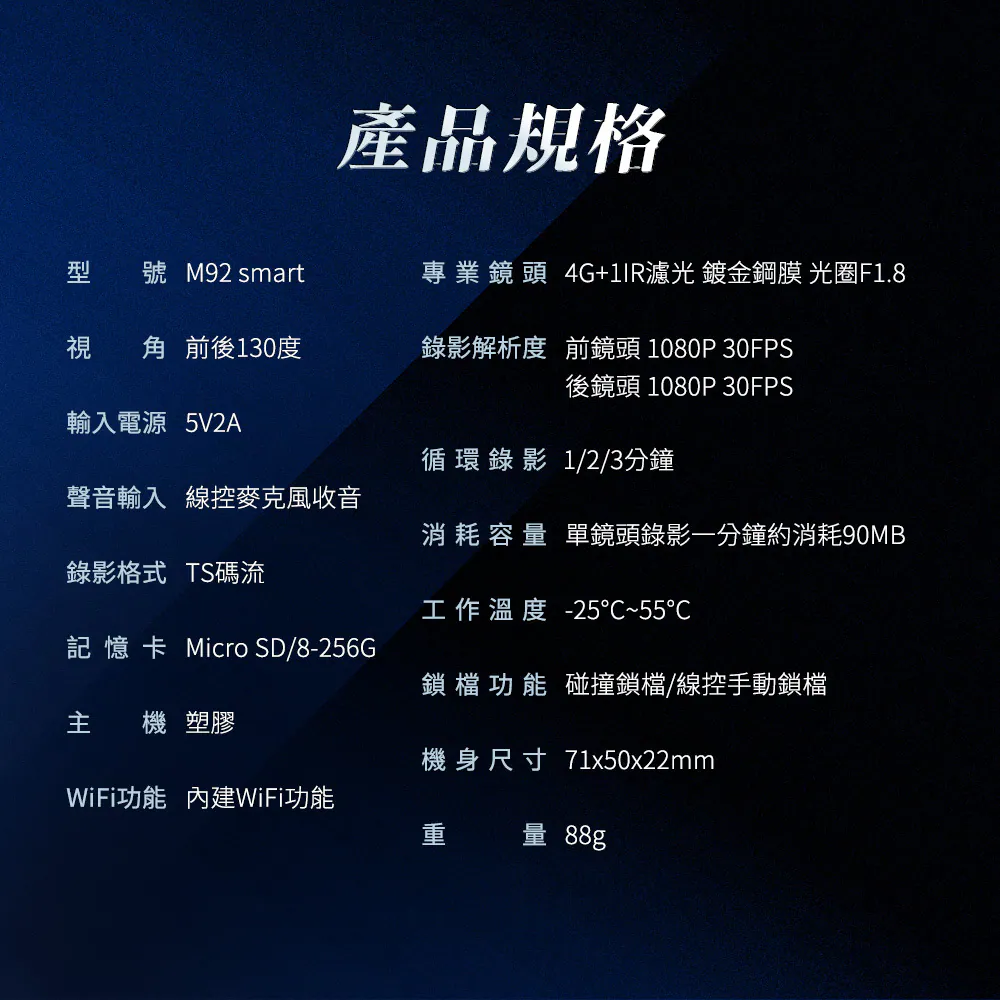 冰鷹M92smart 雙鏡頭機車行車紀錄器 無螢幕輕巧版【贈送64G記憶卡】