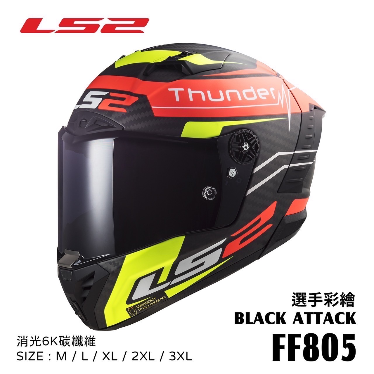 FF805 THUNDER CARBON 產品特點 頂級賽事帽款、通過ECE22.06 CNS加強型安規、亞洲頭型不夾頭 ▪X-Static 銀纖維抑菌抗臭布料 ▪可使用 Tear Off 鏡片防污膜 ▪內附PINLOCK-120極限版防霧片 ▪多密度EPS、碳纖維帽體 ▪雙D扣具設定、安全金屬鏡座 ▪鏡片快拆系統、鏡片中置鎖扣 ▪鏡片抗刮抗UV、緊急拆除系統 ▪內襯全可拆洗、構型雷切泡棉 ▪夾層循環通風、下巴罩防風沙 ▪鼻罩偏轉導霧 帽款 全罩帽 (Full-Face) 重量 小帽體(M、L):1400 ± 50g (含鏡片) 大帽體(XL~3XL):1470 ± 50g (含鏡片) 彩繪款: NTD 12,100(建議售價) 素色款: NTD 11,800(建議售價)
