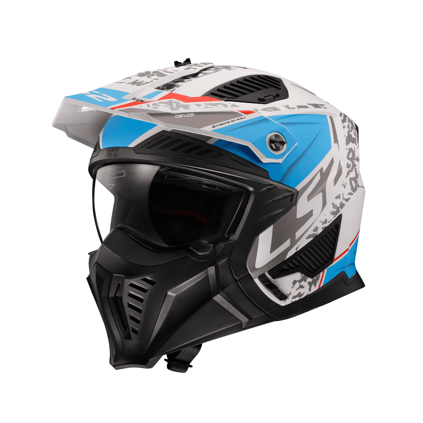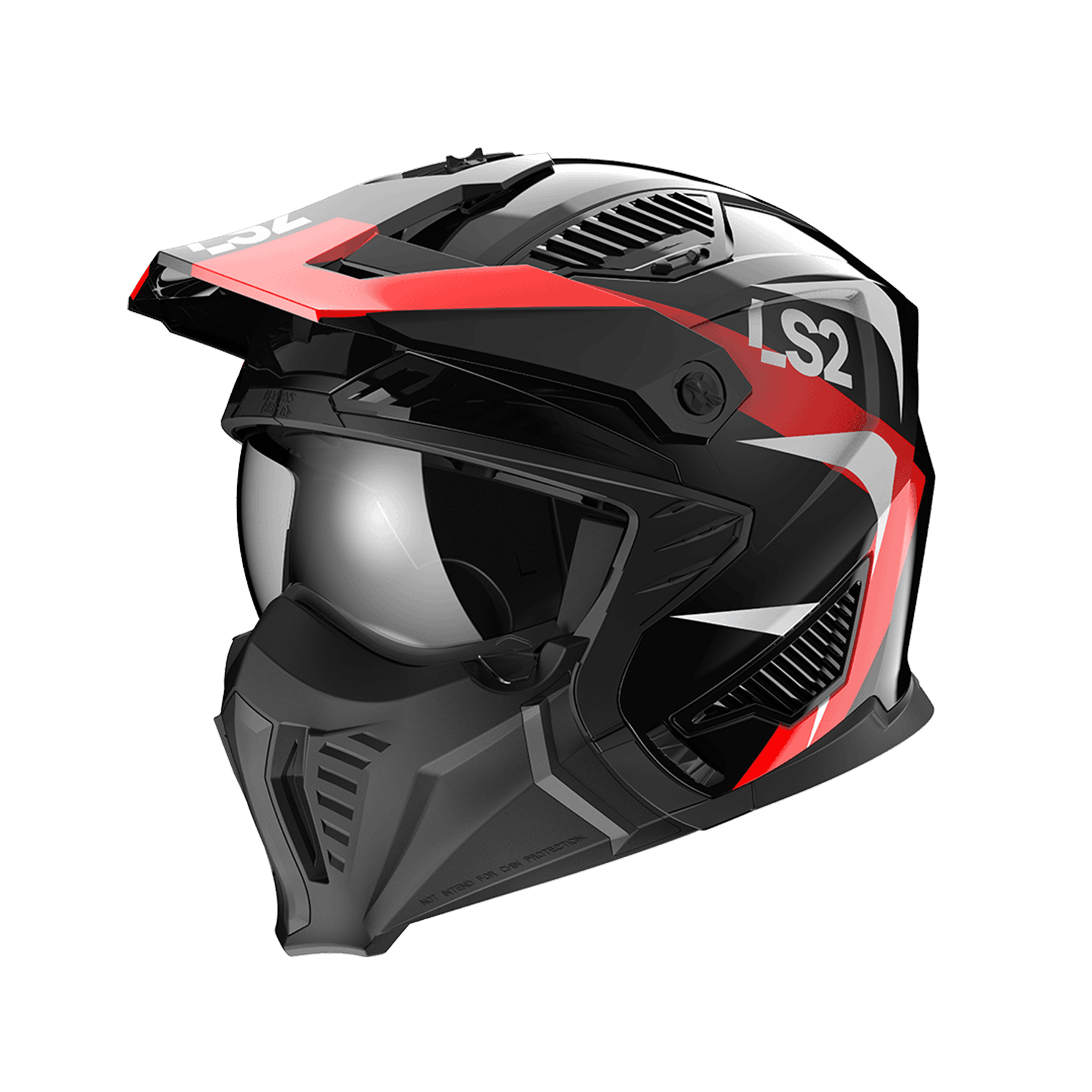 LS2 OF606多功能帽 產品特點多功能複合帽款、通過ECE22.06CNS標準型安規、亞洲頭型不夾頭▪多密度 EPS、KPA 塑材帽體▪金屬排齒插扣、安全金屬鏡座▪鏡片快拆系統、鏡片抗刮抗UV▪下巴面甲可拆、可拆卸式帽簷▪內襯全可拆洗、構型雷切泡棉▪夾層循環通風、高亮反光貼標帽款 多功能帽 (Multifunctional)重量 1400 ± 50g (含鏡片)