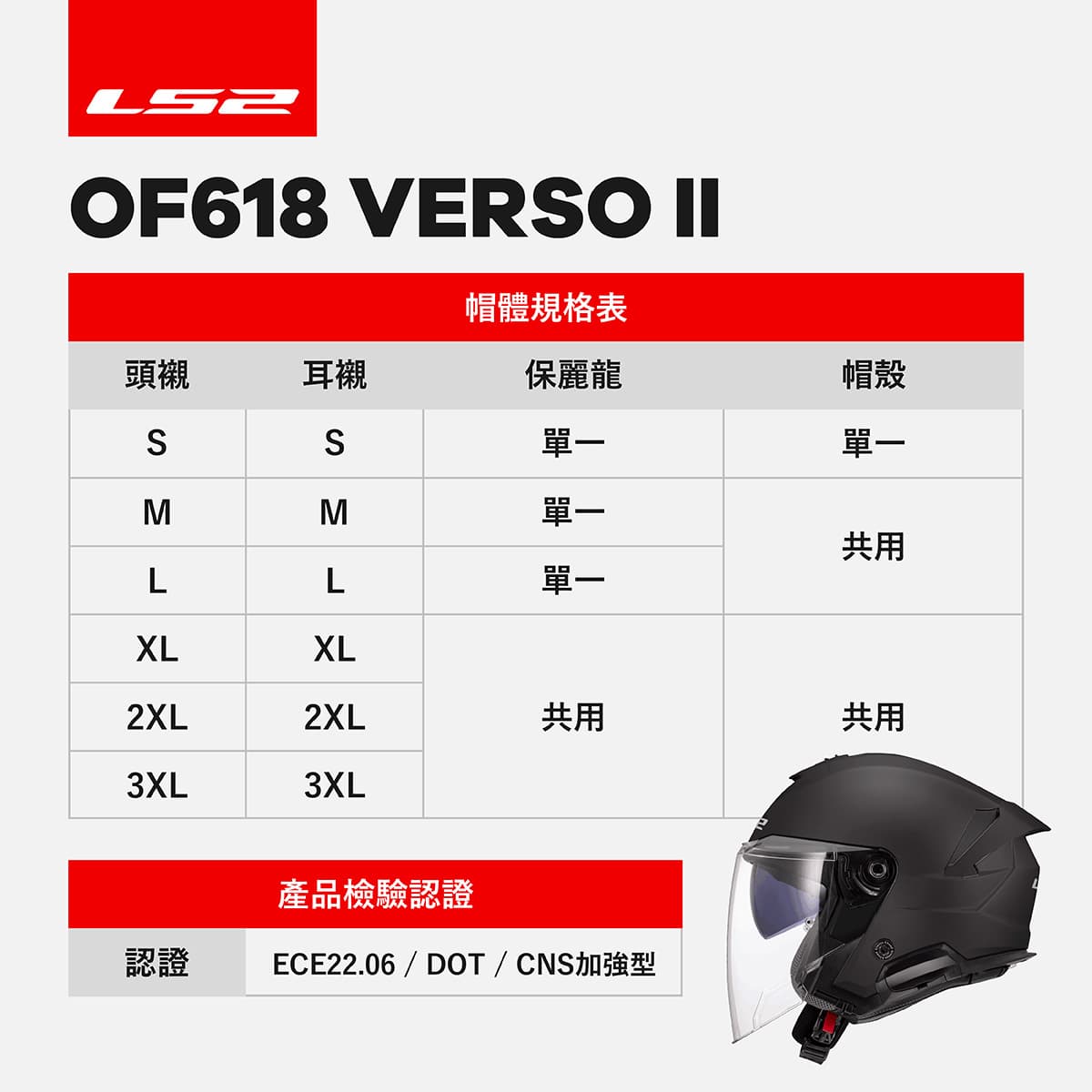 LS2OF618 VERSO II 素色款 產品特點 通過ECE22.06 & CNS加強型 可加裝PINLOCK防霧片 COOLMAX吸濕排汗布料 ※多密度EPS ※鏡片抗刮抗UV ※夾層循環通風 ※鏡片快拆系統 ※KPA塑材帽體 ※快拆內置墨片 ※金屬排齒插扣 ※藍牙耳機擴充 ※構型雷切泡棉 ※內襯全可拆洗 ※3D立體耳襯附鏡鏡溝 帽款 3/4罩式(Jet-Type) 帽體種類 小帽體 (S) 中帽體 (M、L) 大帽體 (XL~3XL) NTD 3,300(建議售價) #安全帽 #全罩式安全帽 #復古帽 #飛行帽 #多元支付 #台中市購物節 #銀角無卡分期 #信用卡分期 #月付大人 #童帽 #雨衣 #手套 #車架 #無卡分期 #kyt #M2R #THH #Astone #zeus #SOL #NIKKO #EVO #NINJA #行車記錄器 #藍芽 #安全帽藍芽耳機