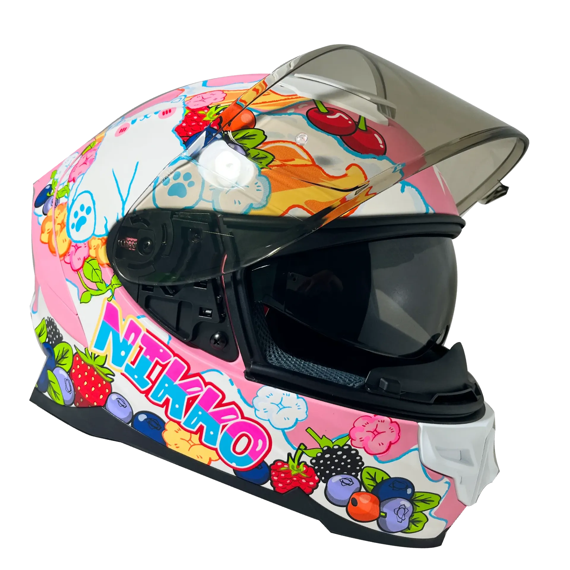 【N806_純真漿果糖】 ✅ 果香雪霧、蜜戀甜風雙色設計,消光塗層。 ✅ 外鏡片自帶PINLOCK,可依自身需求習慣加裝防霧片。 ✅ 高階進口帽專用內襯剪裁,加強帽體內氣流對流效果。 ✅ 渠道式保麗龍溝槽,散熱效果極度有感。 ✅ 冰礦涼感咖啡紗面料,親膚、吸濕、排汗除臭零過敏。 ✅ 帽體重心改良,肩頸壓力大幅降低。 ✅ 環保無毒塗料使用,不傷人體,降低環境負擔。 ✅ 彩繪版次PLUS,細緻度耐刮度提升。 ✅ 結合空氣動力學的外型設計,含內建空氣導流片降低風阻。 ✅ EQRS 緊急快拆內襯結構。 ✅ 加大式通風孔,配合內建通風系統加強導出熱氣,維持帽內舒適度。 ✅ 多密度內襯剪裁,貼合臉部線條,提升包覆及舒適度。 ✅ 五件式可拆洗內襯,布料易乾易清洗。 ✅ 含內建耳機槽,方便置入通訊設備,不卡耳。 ✅ 快拆式外鏡片浮動鏡座。 ✅ 鏡片厚度提升,加強鏡片穩定度,強化耐刮塗層。 ✅ 制動式抗UV-400內墨鏡,保護眼睛,操作簡易。 ✅ 符合ECE、DOT、JIS、CNS加強型等安全認證。