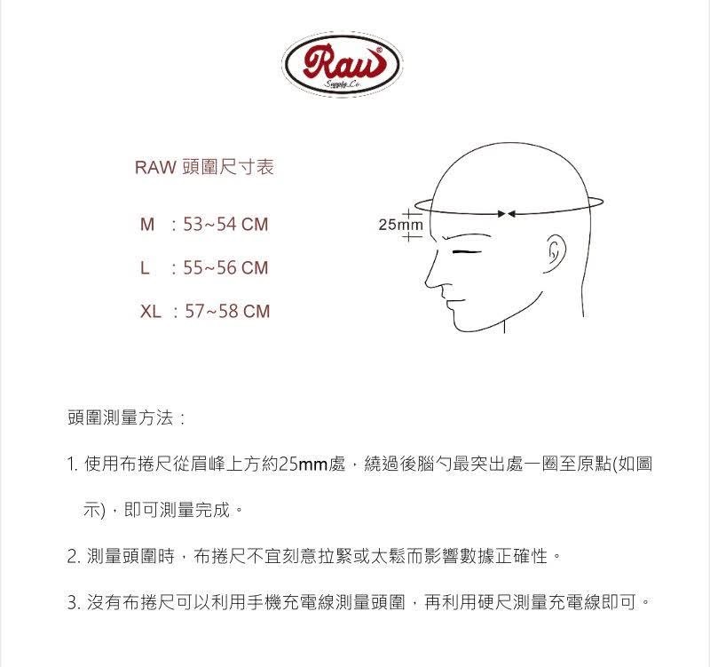 RAW(小帽體)-山車帽 NT$ 3580 RAW品牌創立於2013年,在韓國、泰國 、越南 、日本等OFF-ROAD車圈都可以看到它的風采,版型以小帽體設計,小頭專屬,戴出最佳身型比例,錐形下巴搭配山車帽該有的經典斜口排氣孔,是一頂喜愛70年代復古山車帽的車友們不可錯過的經典單品。 規格特色 帽體:抗衝擊性ABS材質,小帽體。 內襯:親膚特級布料、駝色耐磨皮革、不可拆卸。 釦環:雙D式安全釦環。 重量:1150 ± 50g。 產地:越南。 總代理商:Feture飛喬。 認證:國家 CNS/DOT 安全雙認證。 帽袋:隨帽附贈黑色帽袋。 頭圍尺寸:M (53-54cm)、L (55-56cm)、XL (57-58cm)。選購前請確實丈量頭圍並參考以下頭圍尺寸表。 #無卡分期 #賣貨便貨到付款 #多元支付 #賣貨便免運 #銀角零卡zingala #國民旅遊卡特約商店 #多元支付方式☺️信用卡 #山車帽 #小帽體 #全罩式安全帽 #全罩式