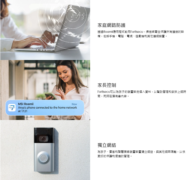• 簡易好用:使用MSI Roamii應用程式在幾分鐘內設置和管理您的網狀網絡,並即時接收安全通知