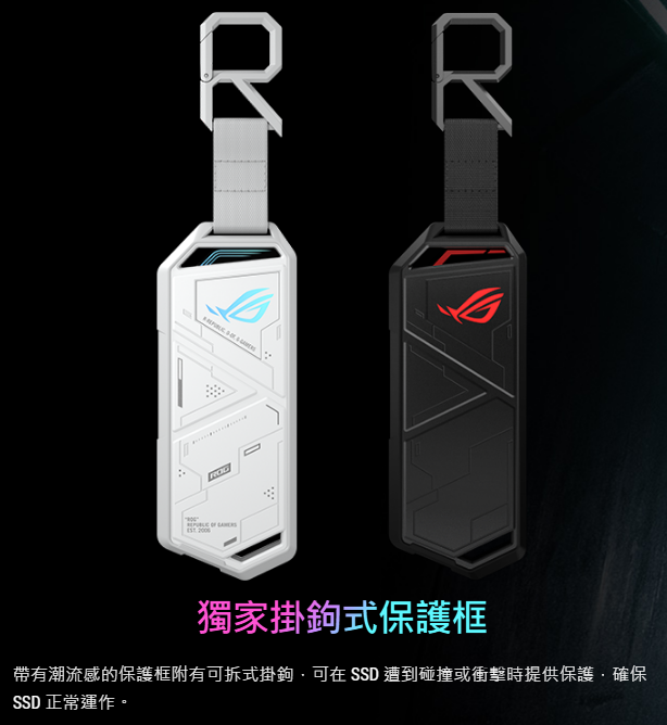 • 獨家掛鉤式保護框:保護SSD外接盒免於碰撞