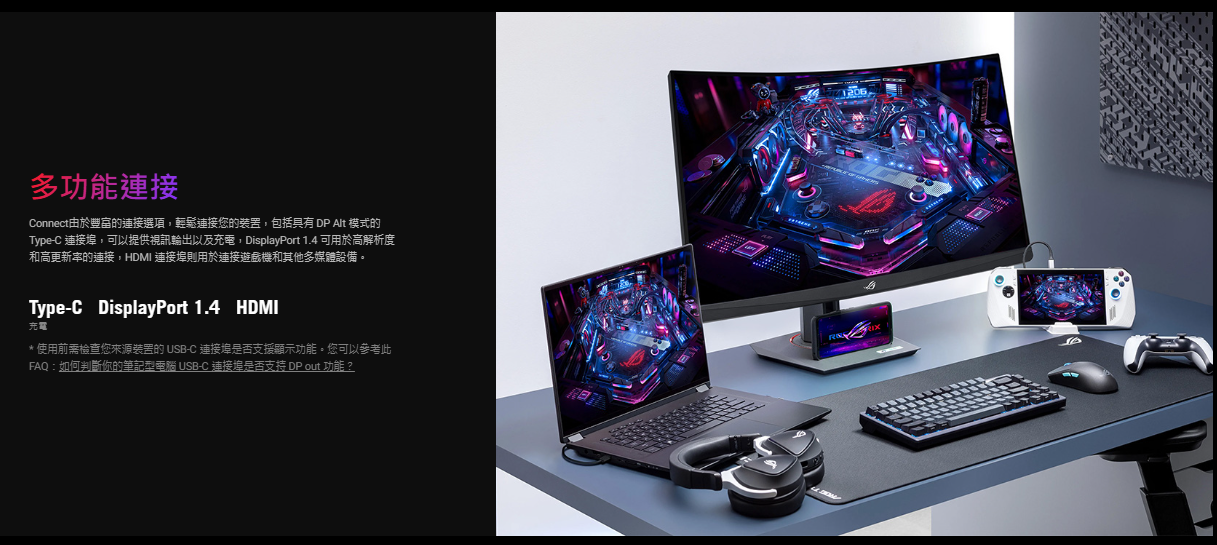 ROG Strix XG32WCMS USB Type-C 電競顯示器 – 32吋 (31.5 可視) 2560x1440,曲面,280Hz(144Hz 以上),1ms(GTG),Fast VA,Extreme Low Motion Blur,USB Type-C,DisplayWidget Center,三腳架插孔,HDR