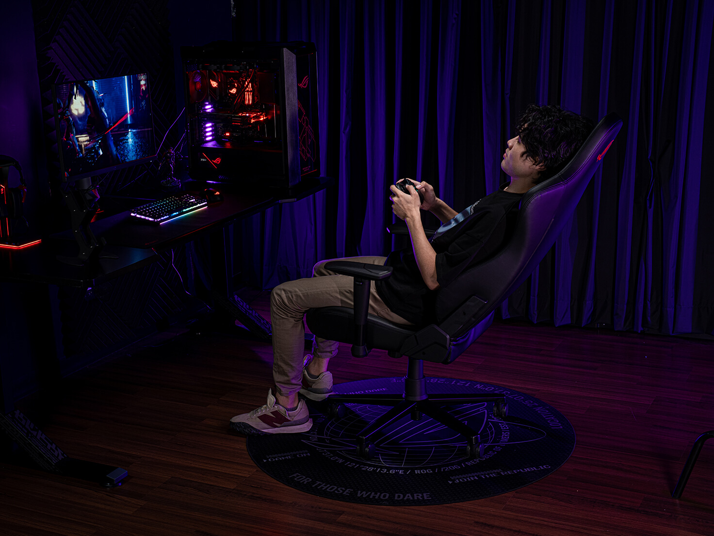 ROG Aethon 電競椅採用全鋼材骨架、雙倍密度座墊、含2D軟墊扶手,並內建腰靠以提供最佳化的舒適性