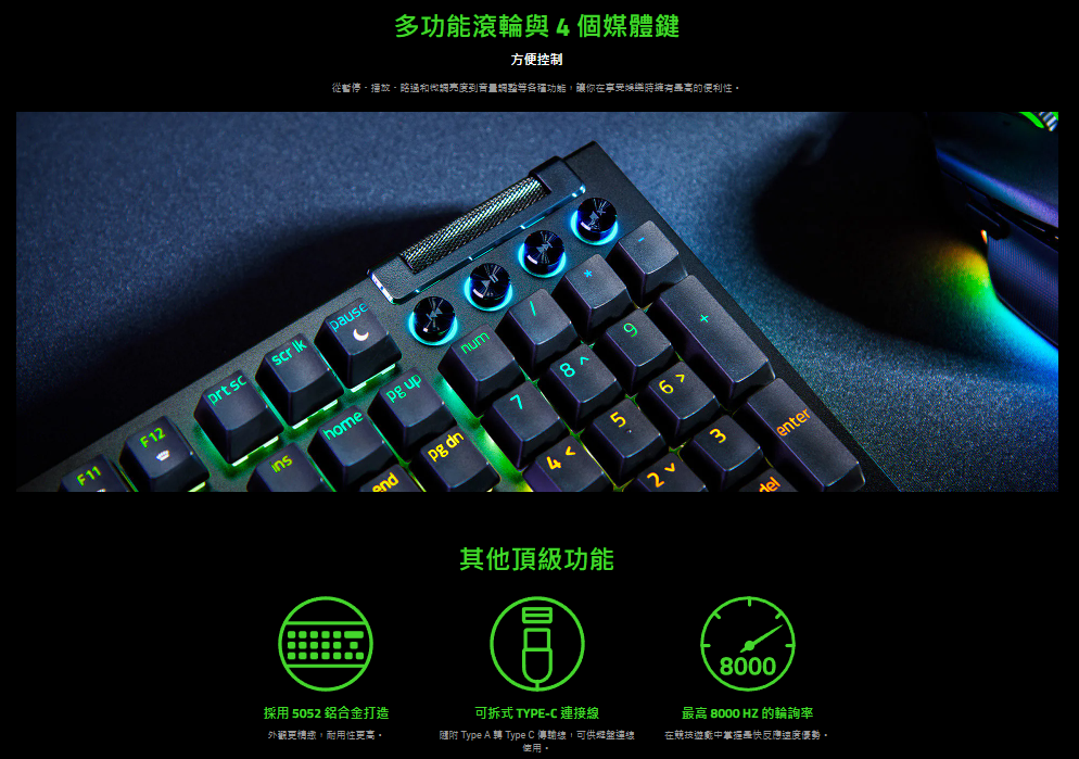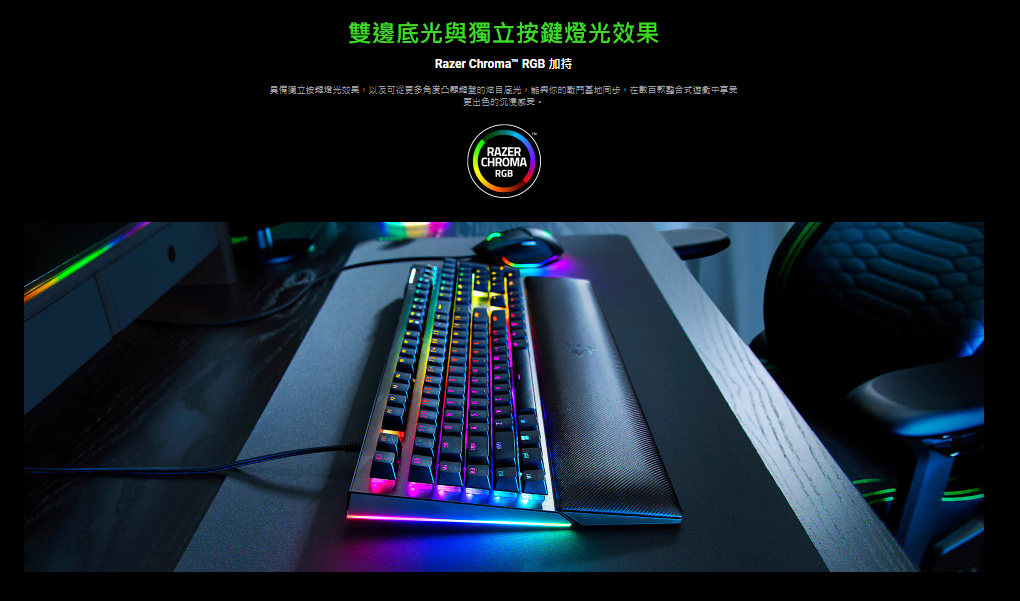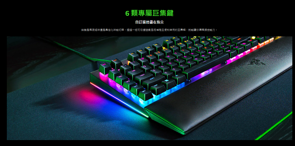 百分百的沉浸戰鬥基地體驗 運用最適合電腦配置的完美控制中樞,以最佳化的空間打造戰鬥基地。這款高階機械式鍵盤搭載巨集和媒體鍵,讓你輕鬆存取進階命令與捷徑,更可全面發揮 Razer Chroma™ RGB 效果,讓你更加強化身歷其境的效果。