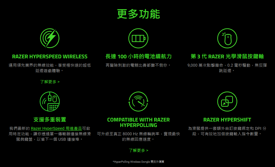 9、可升級至真正8000 Hz無線輪詢率,實現最快的無線回應速度(需另購傳輸器)