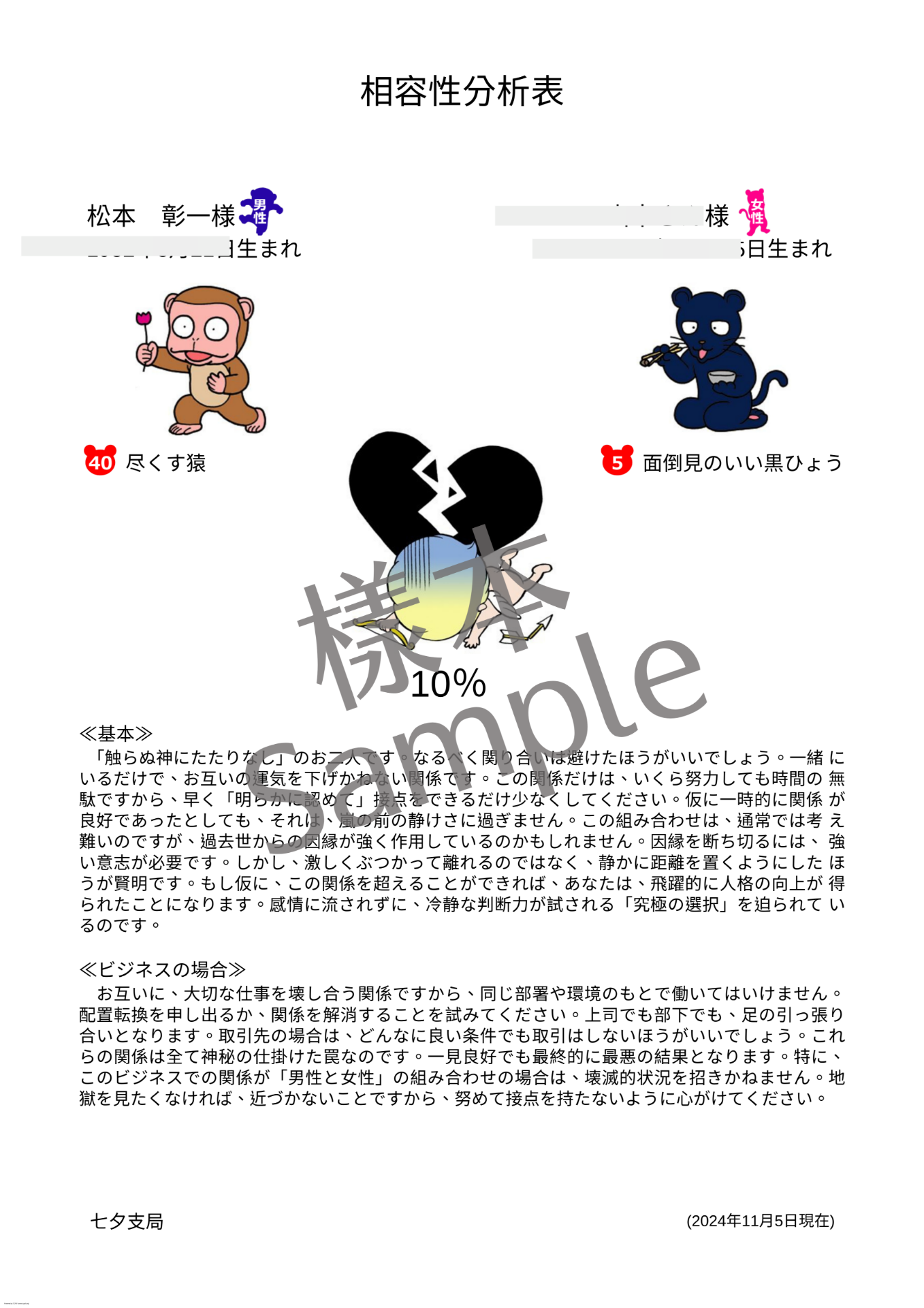 ・戀人 ・夫婦 ・親子、兄弟、姐妹 ・朋友 ・工作夥伴 ※ 需要分析者的出生日期