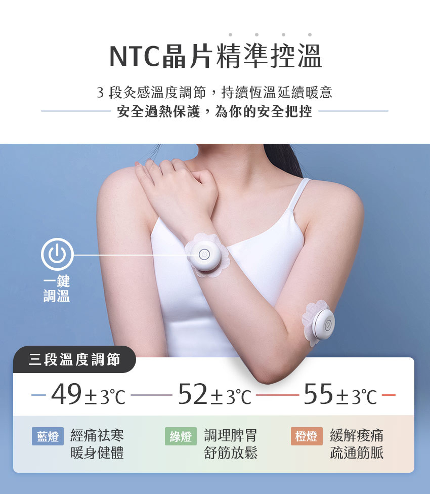 ※ 建議溫度從最低段開始,根據個人情況逐漸調節至適合自己的溫度,避免對熱不敏感導致皮膚燙傷。