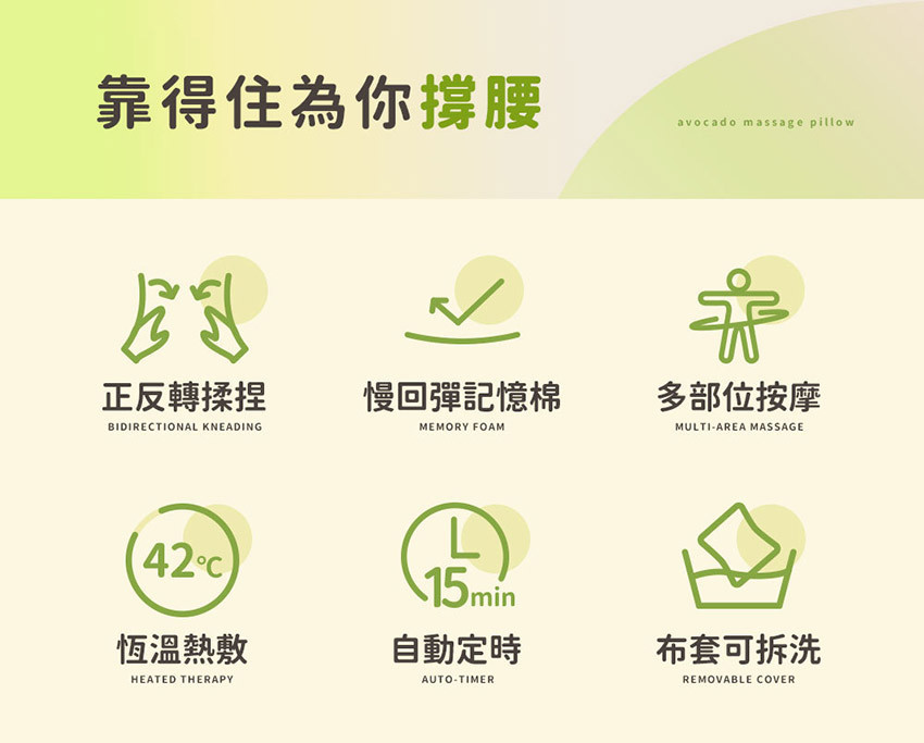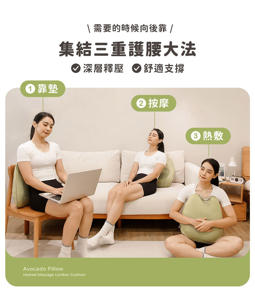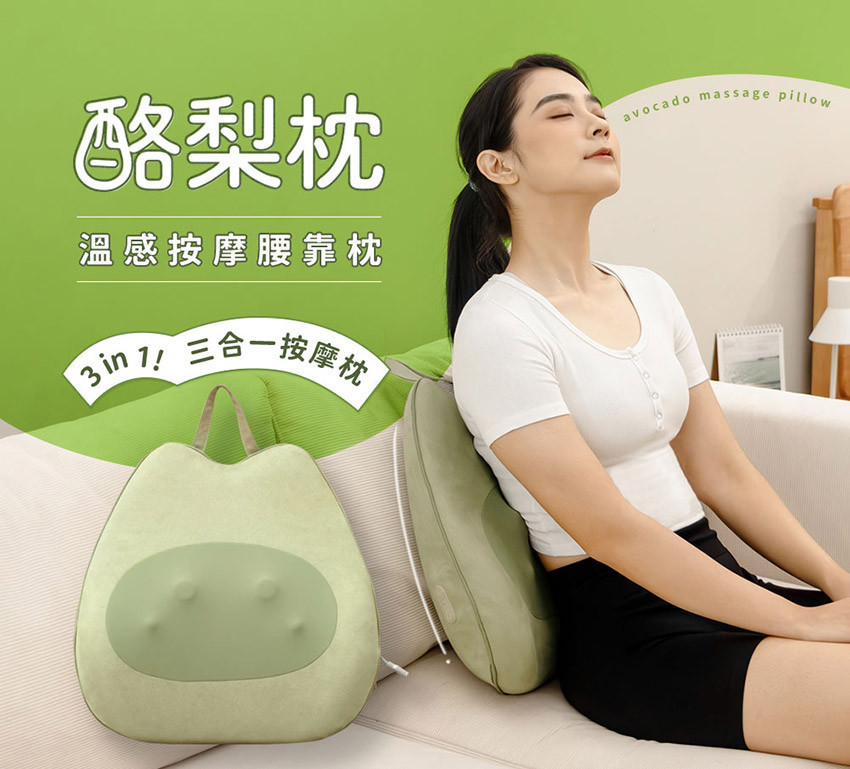 【3ZeBra】酪梨枕|溫感按摩腰靠枕(三合一按摩枕)