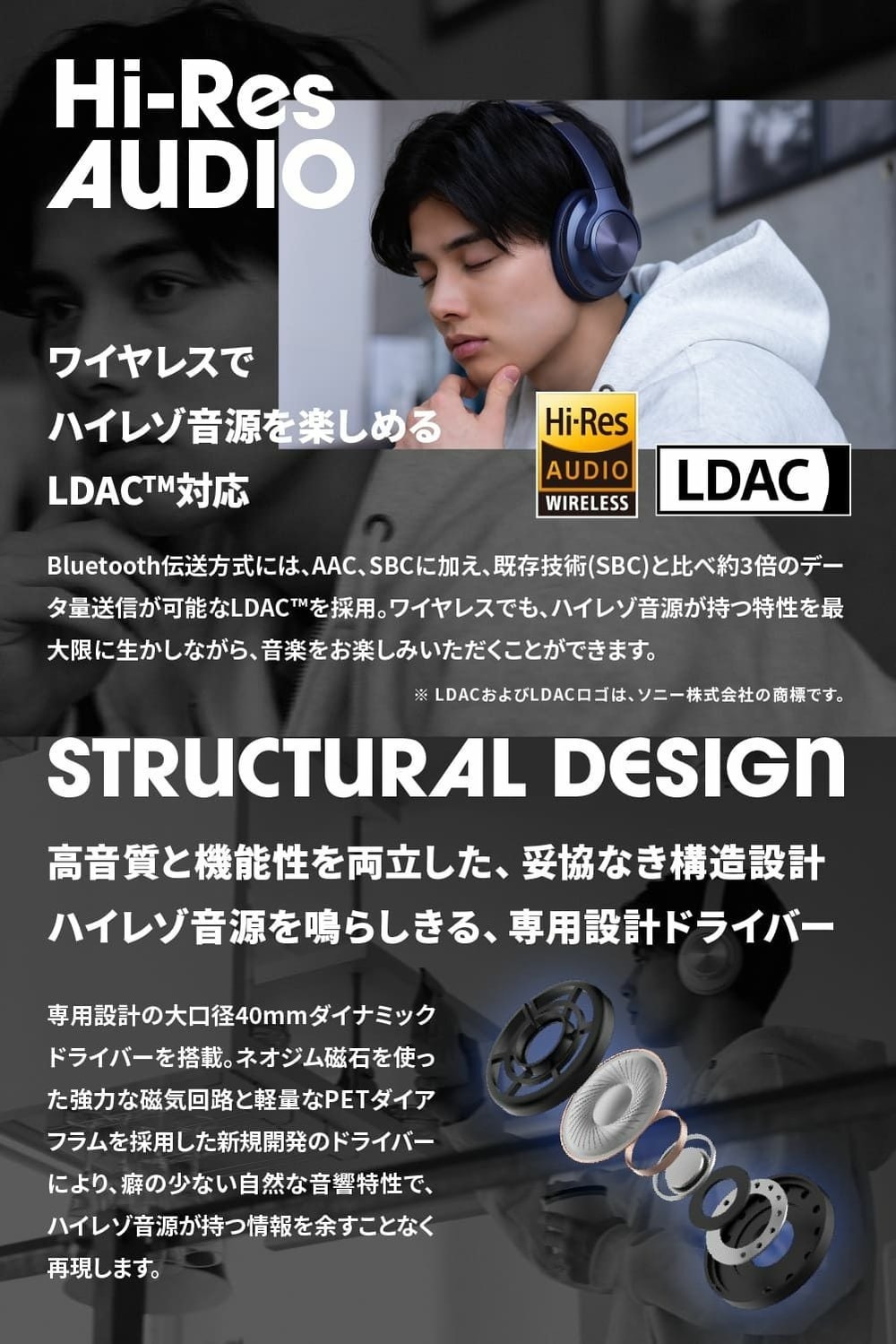 支援 AAC、SBC 和 LDAC 編解碼器,體驗高品質的無線音訊傳輸。 可折疊設計和輕量結構 (約 267 克),確保在長時間內輕鬆攜帶和穿著舒適。 記憶泡棉耳墊提供舒適貼合、無壓力,增強您的聆聽體驗。