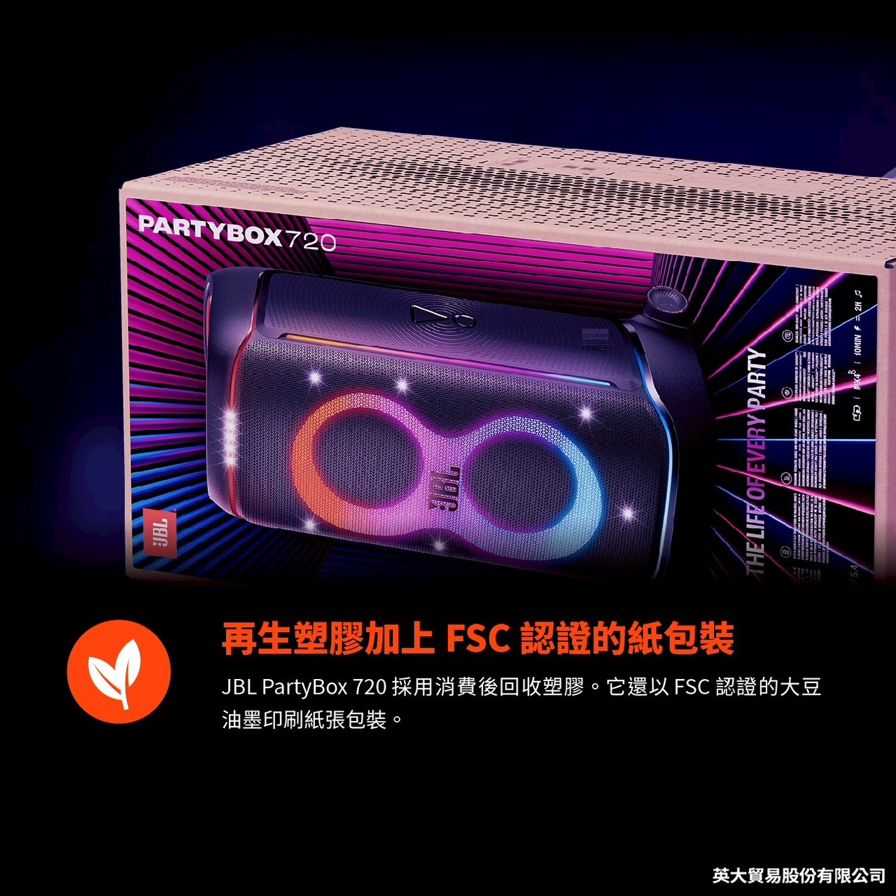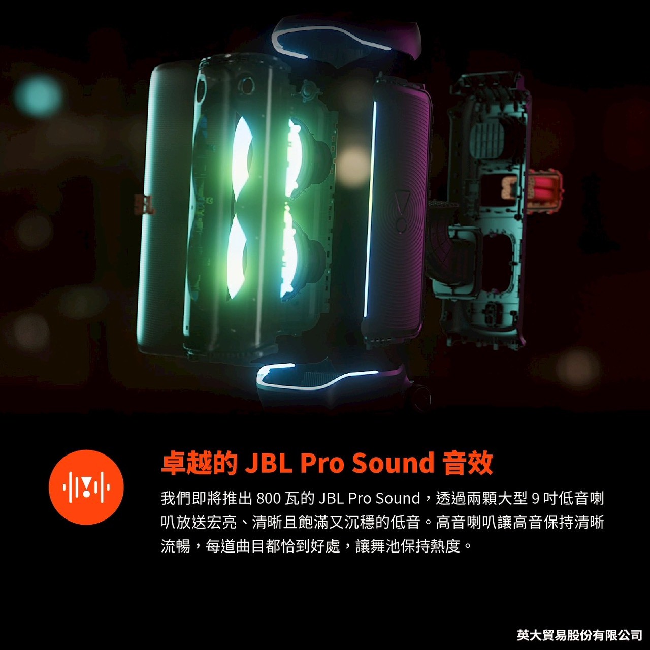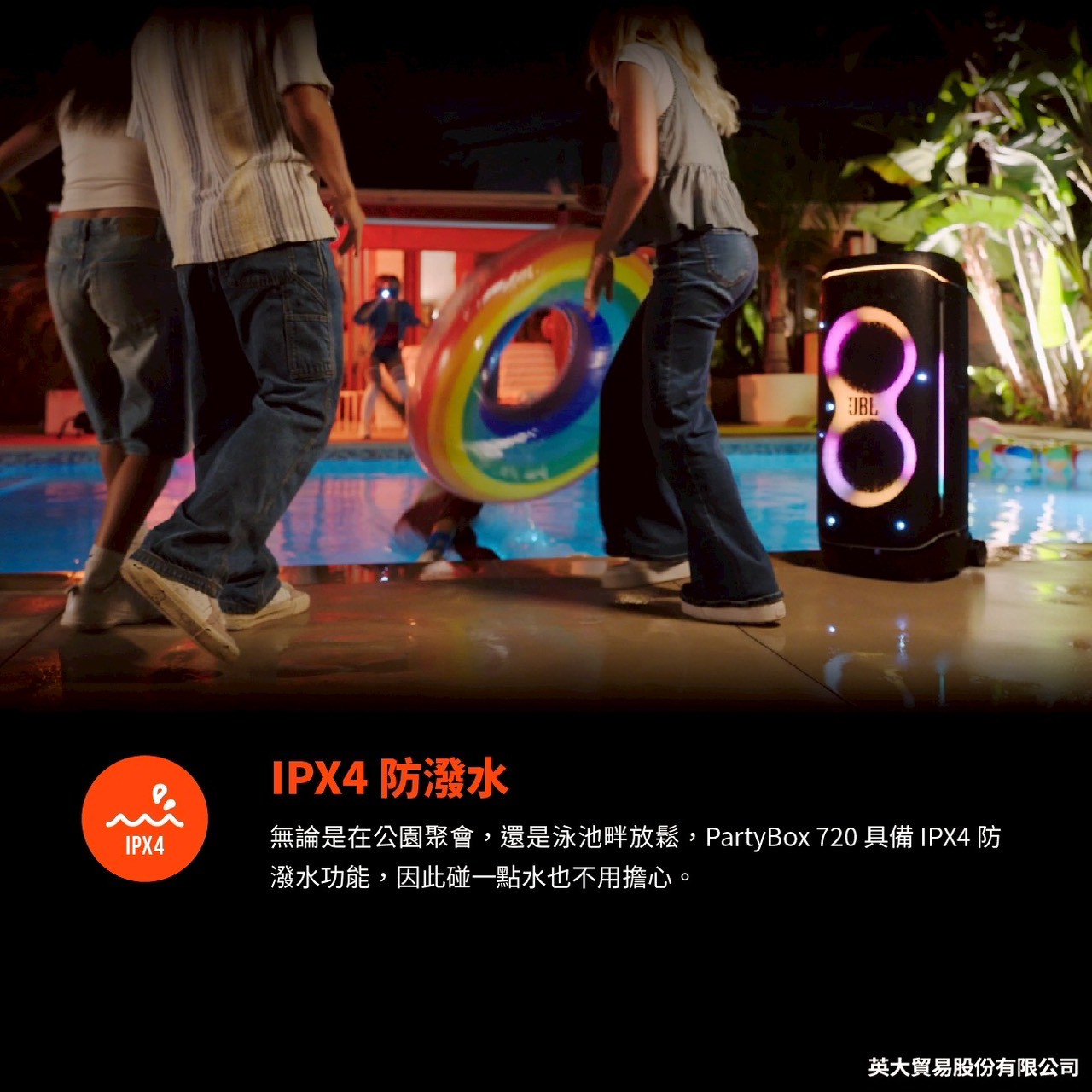 JBL PARTYBOX 720 攜便式派對燈光藍牙喇叭 ~未來感燈光秀 ~播放時間長達 15 小時 ~IPX4 防潑水