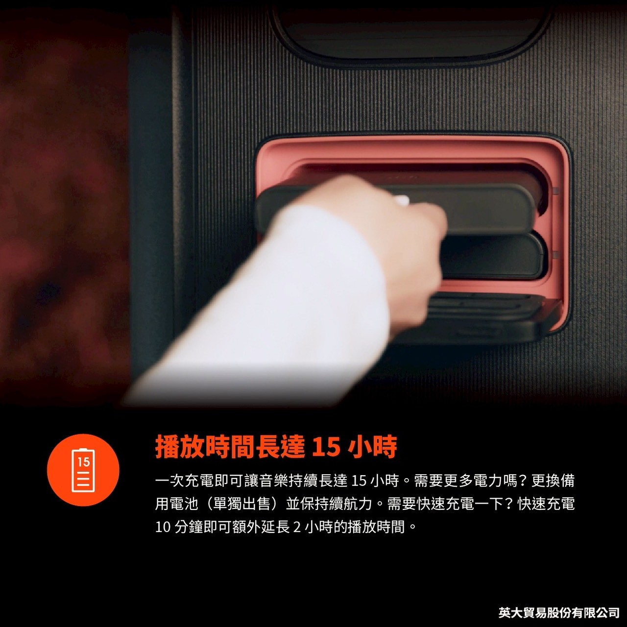◆ 音樂播放時間: 長達 15 小時 (視音量和音訊內容而異)