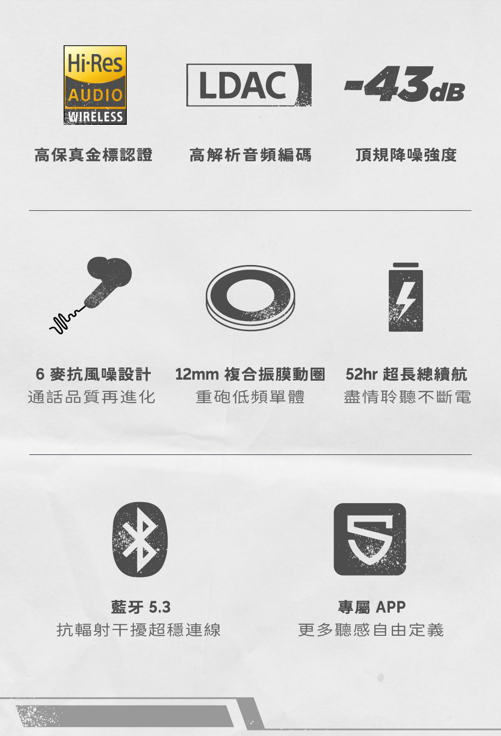 ◆ 電池續航:19hr (耳機續航)、46hr (充電艙可充電量續航)