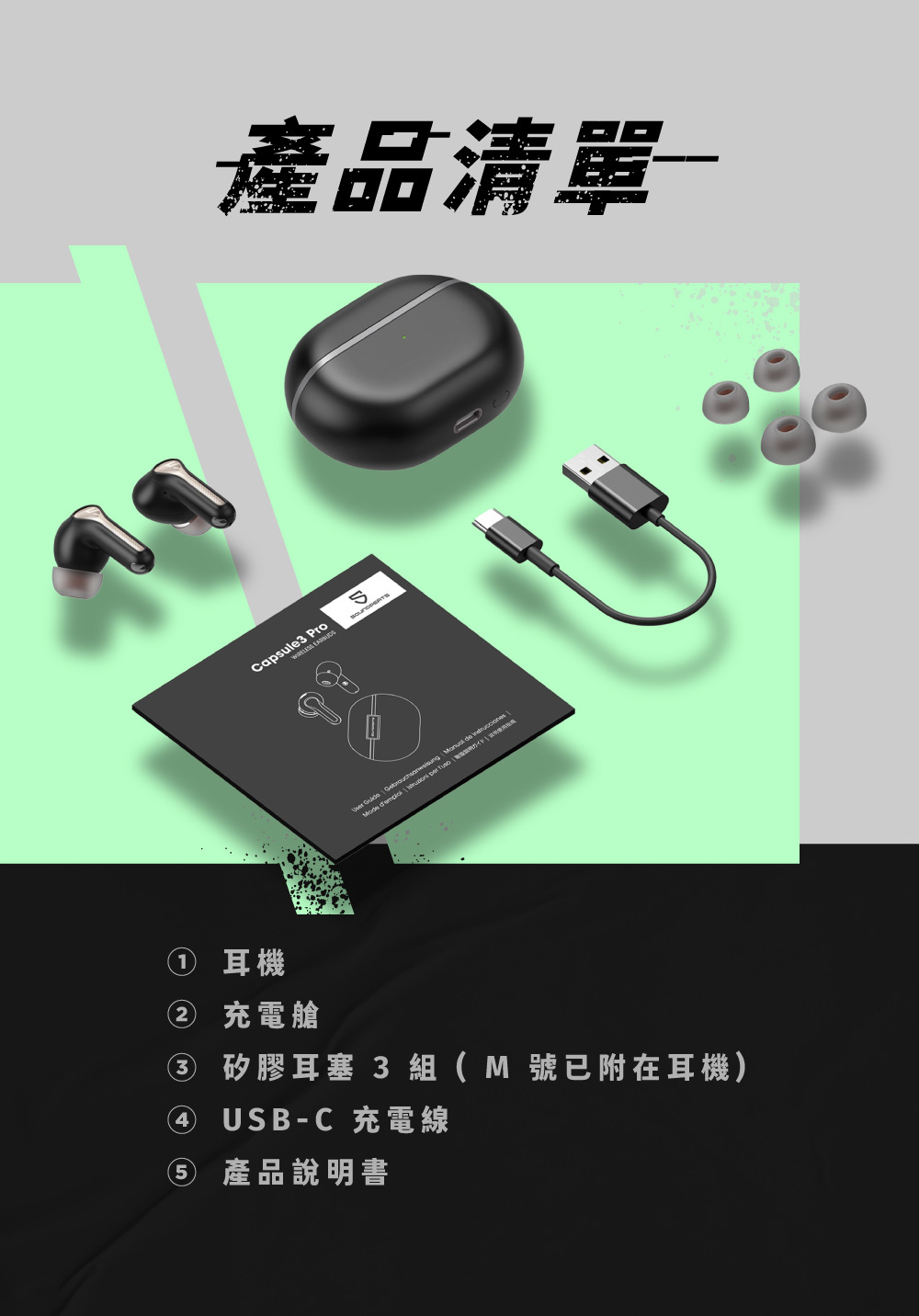 ◆ 產品配件:耳機 、充電倉、USB-TYPE C充電線、產品說明書