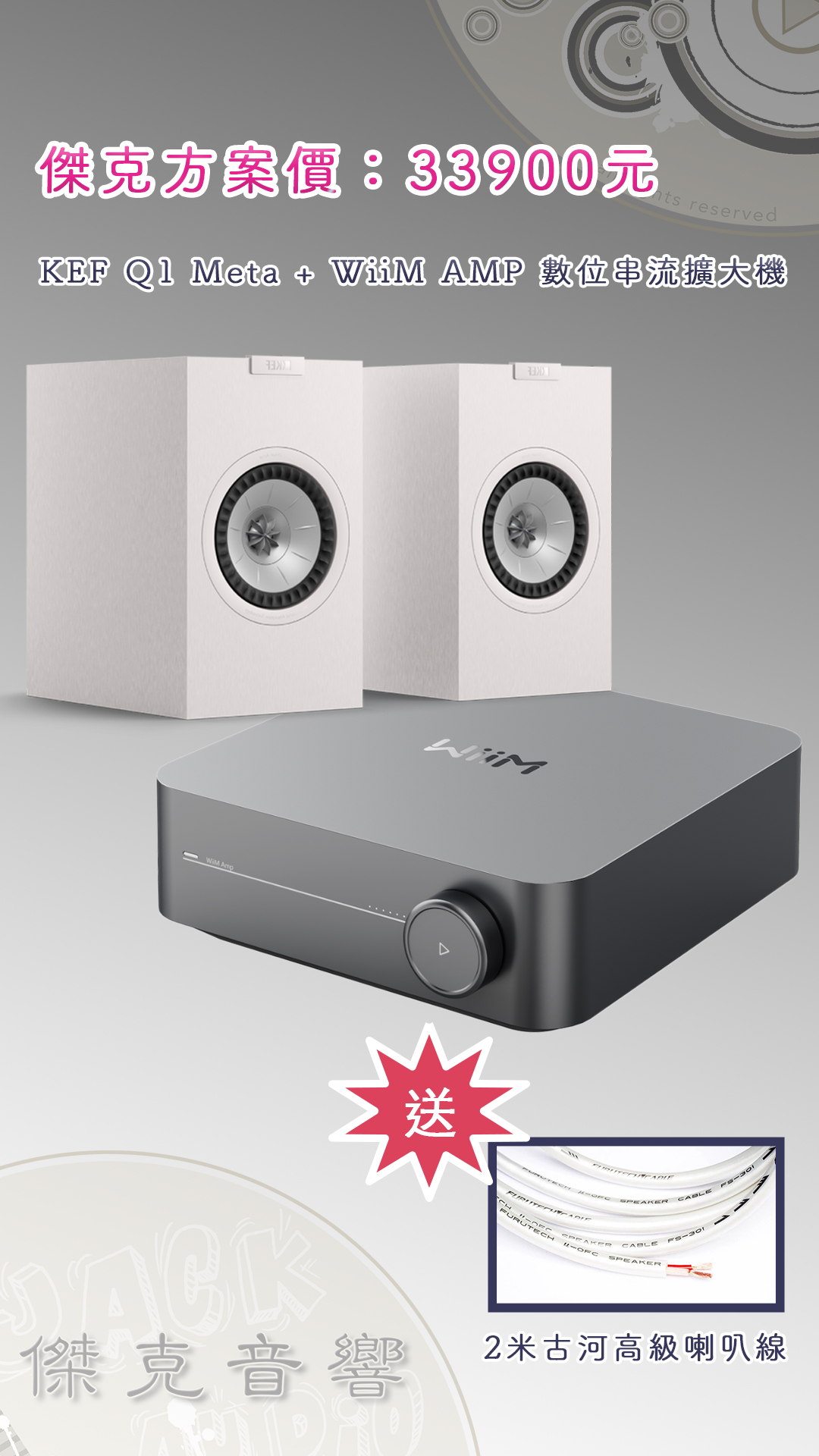 KEF Q1 Meta 搭配 WiiM AMP 數位串流擴大機、送2米古河喇叭線