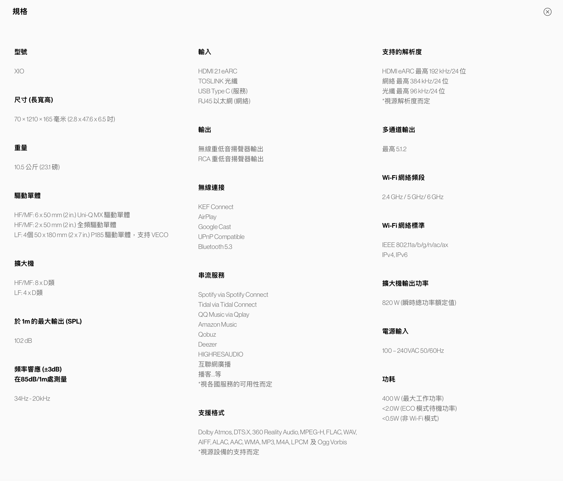 XIO 支援各種主要的串流服務,包括 Spotify、TIDAL、QPlay、Amazon Music 和 Qobuz,帶來高傳真音樂體驗。XIO 也兼容多種音頻格式,包括 PCM 檔案、Dolby Atmos音樂和 Sony 360 Reality Audio。