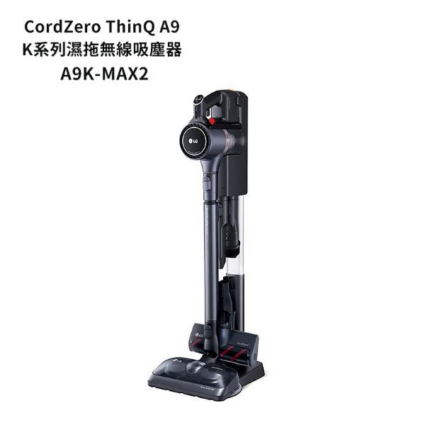 LG樂金【A9K-MAX2】CordZero ThinQ A9K系列(濕拖)無線吸塵器-寂靜灰