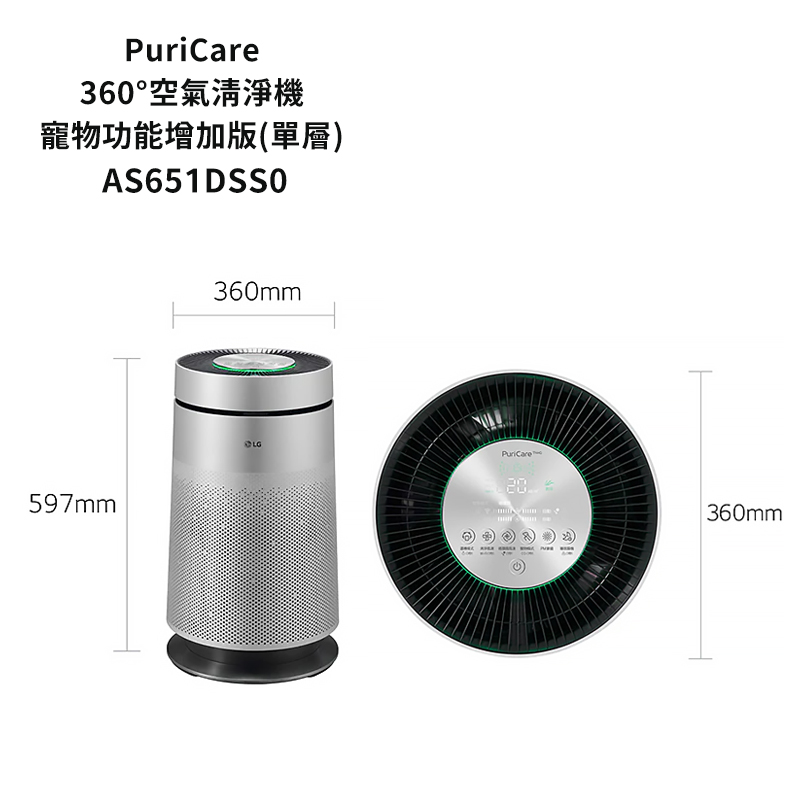 LG樂金【AS651DSS0】PuriCare 360度空氣清淨機 寵物功能增加版(單層)