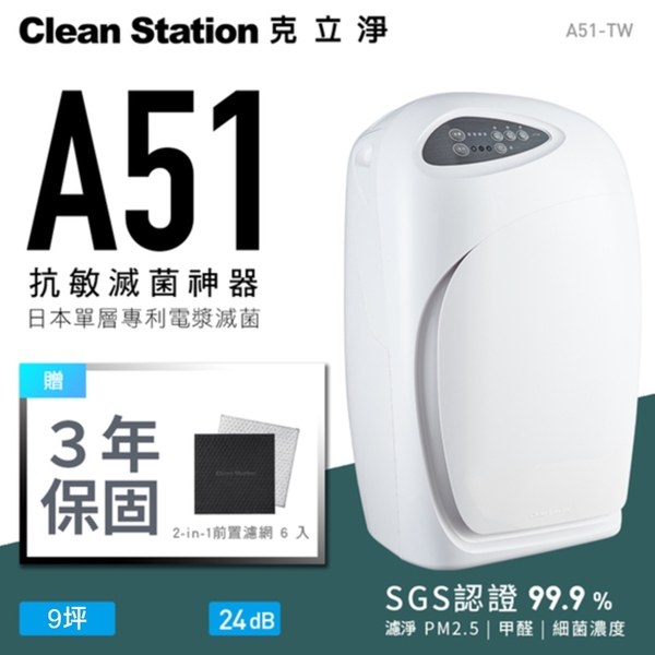 機器:克立淨專利電漿空氣清淨機(A51)x 1台