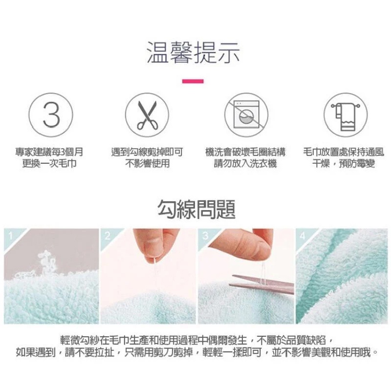 1. 新毛巾請勿直接使用,應將新毛巾用水洗淨後再開始使用。