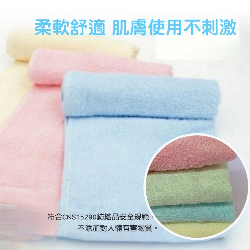 純棉織造 舒適柔軟 不含甲醛、螢光劑 材質:100%棉 重量:20兩 尺寸:33*74cm(誤差±2cm為正常範圍) 產地:台灣 內容:12條四色取合裝 顏色:粉紅、黃、綠、藍色 ◎堅持品質,台灣製造。 ◎品質安心保證。 ◎符合CNS15290紡織品安全規範,不添加對人體有害物質。 ◎色牢度符合國家標準,耐洗不易褪色。 ◎純棉織造柔軟舒適,肌膚使用不刺激。