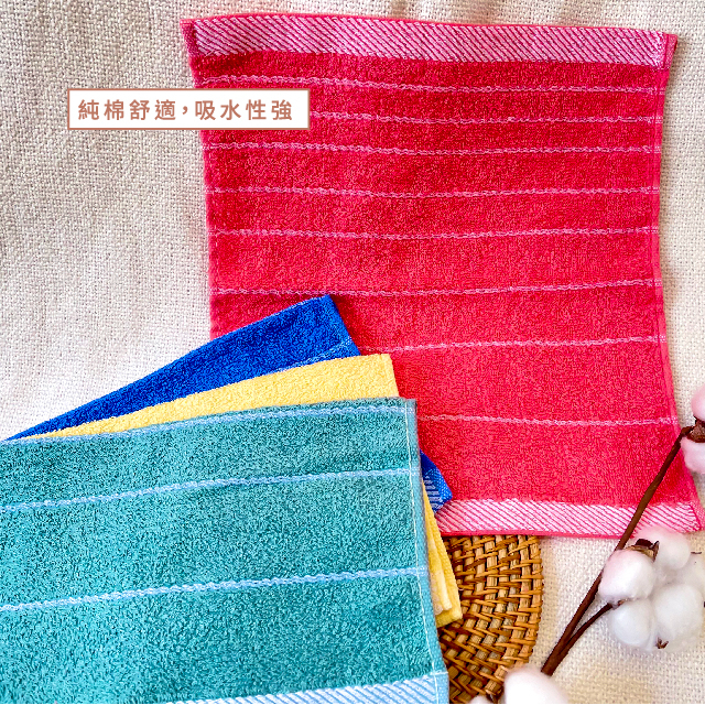 ■全程台灣製,品質保障 ■用途廣泛,可做手帕、擦拭巾 ■純棉舒適,吸水性強 ■經過商檢驗證合格,無甲醇、無螢光漂白劑、無致癌染料 【商品規格】 尺寸 :28cm*30cm ±5 重量:10兩 顏色 :紅、綠、黃、寶藍,共4色 材質 :純綿 產地 :台灣