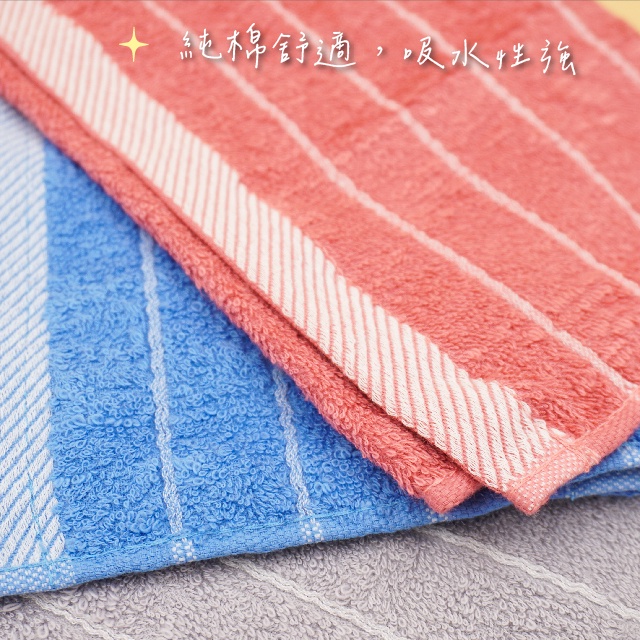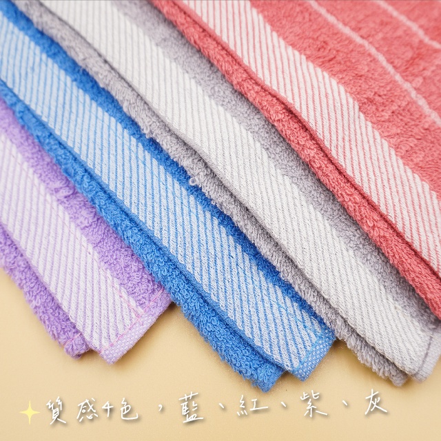 ◆全程台灣製,品質保障 ◆純棉舒適,吸水性強 ◆經過商檢驗證合格,無甲醇、無螢光漂白劑、無致癌染料 【商品規格】 尺寸 :28cm*50cm ±5 重量:16兩 顏色 :藍、紅、紫、灰,共4色 材質 :純綿 產地 :台灣
