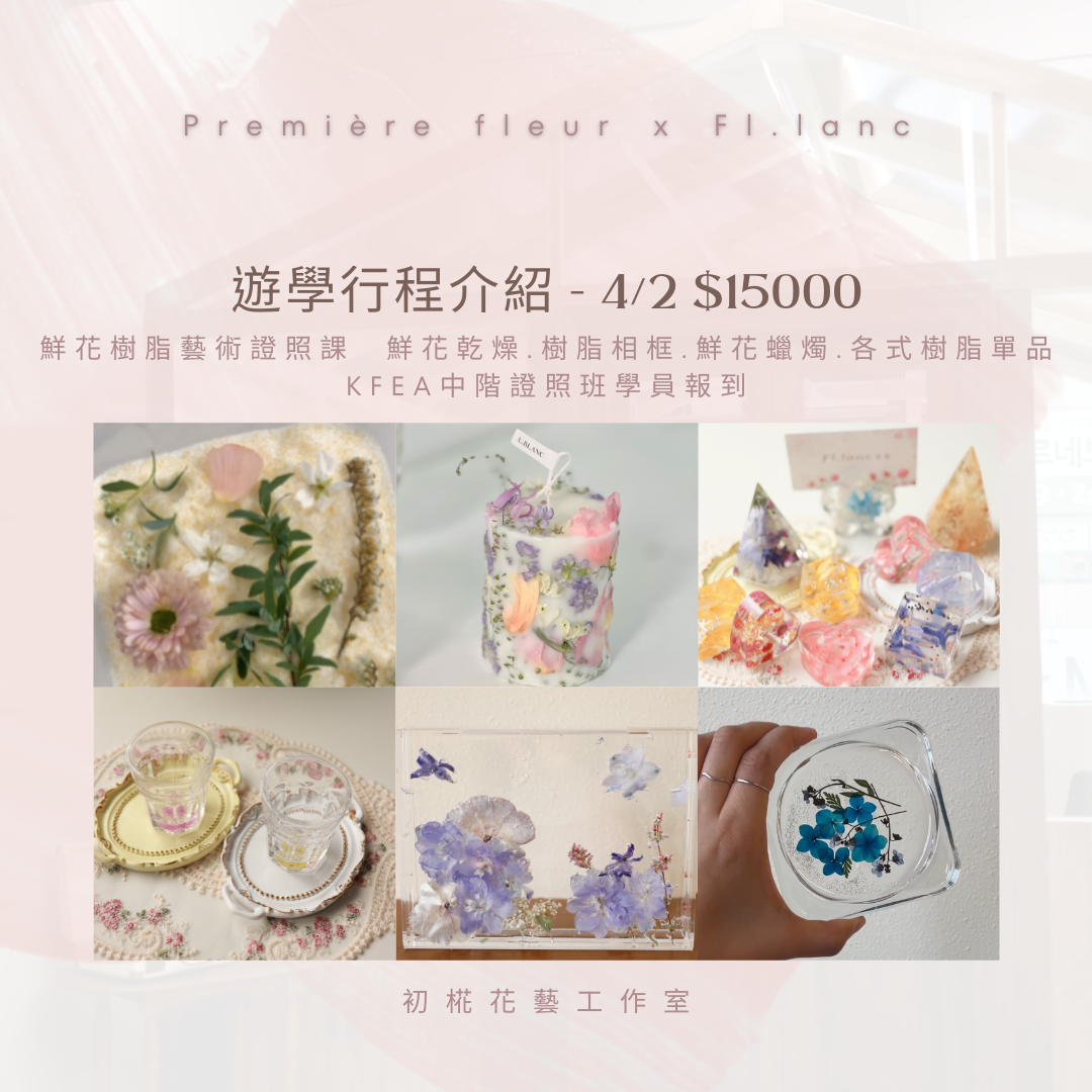 📢 與韓國花藝同步學習,掌握最新韓國花藝知識,體驗韓國花市巡禮與學習獨特的樹脂工藝設計,掌握花藝潮流與專業技能!🌟