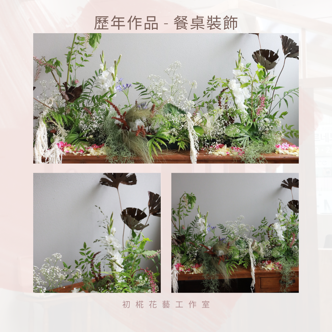 • 曾任職於頂級酒店與婚禮團隊,精通婚禮花藝布置與策劃