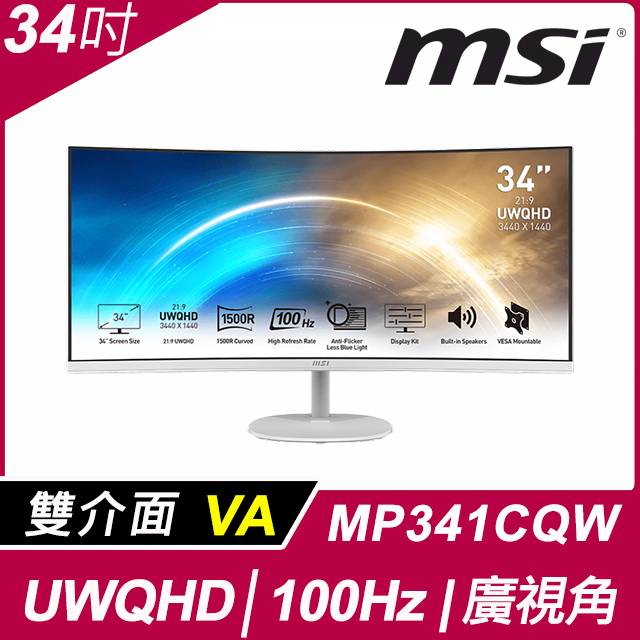【CBG創億購】MSI PRO MP341CQW 曲面螢幕