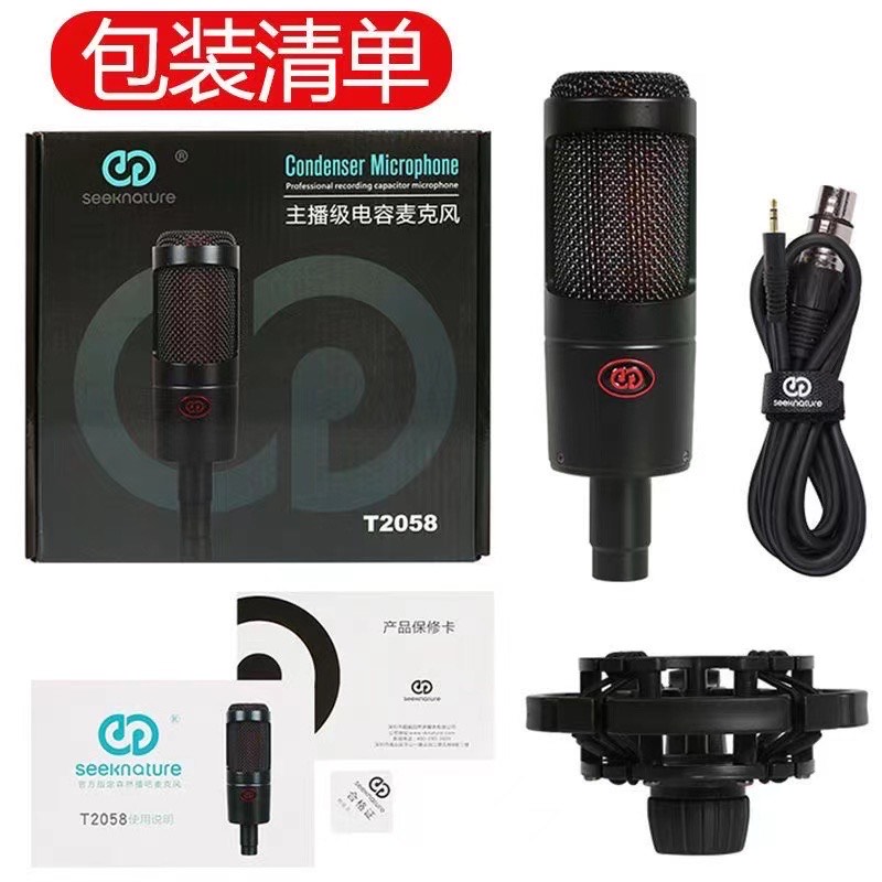 產品內容:森然原廠高級紙盒X1、T2058麥克風X1、產品服務保證卡X1、卡農線x1、森然原廠防震架X1