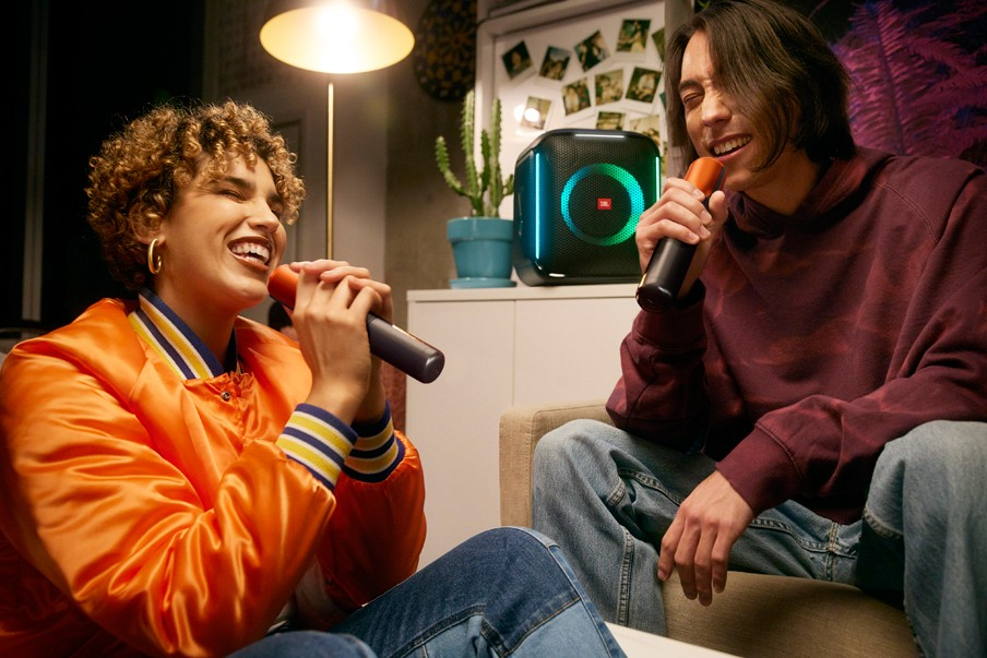 踏入聚光燈下。JBL PartyBox Encore 包含兩個優質壓鑄鋅數位無線麥克風,非常適合卡拉OK。它具備低延遲的頻道設計,以及可調整的低音、回音和高音控制,可豐富任何想一起唱歌的人的聲音效能。數位無線麥克風甚至隨附可更換的 AA 電池,讓您整天都能參加派對,整晚都充滿搖滾樂。
