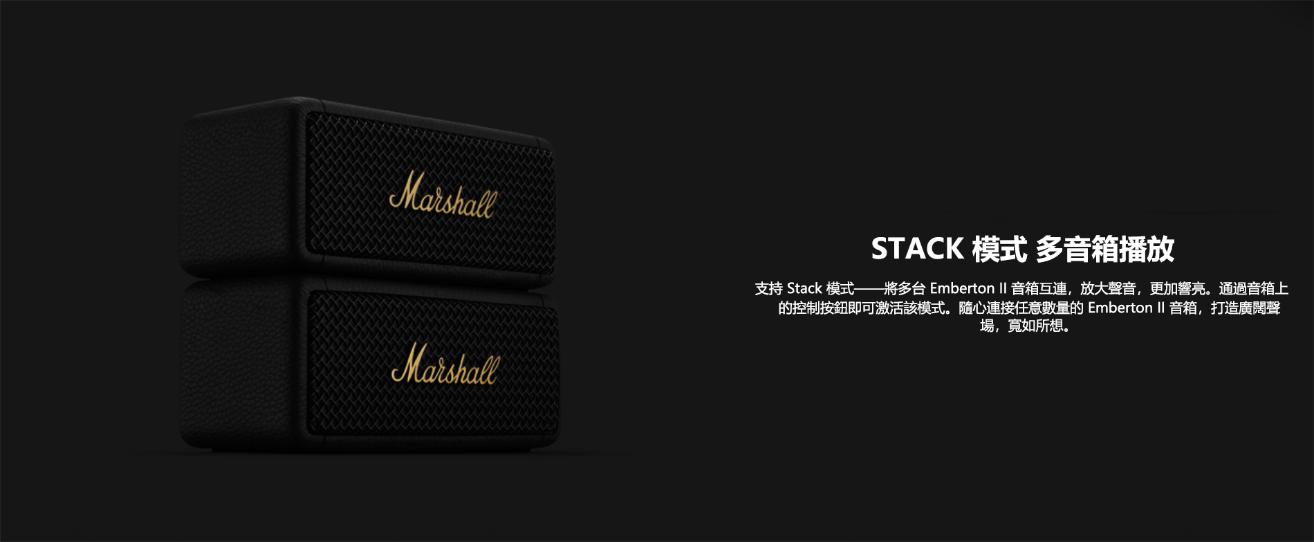 Emberton II 在配備現代科技的同時,保留了 Marshall 的經典外觀設計,集澎湃音效和經典造型於一身。隨時隨地彰顯你的音樂風格。