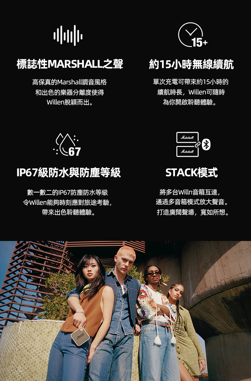 Marshall | Willen 公司貨 無線藍牙小音響戶外防水可通話便攜音箱