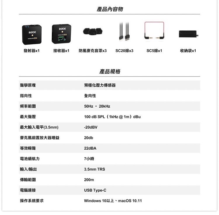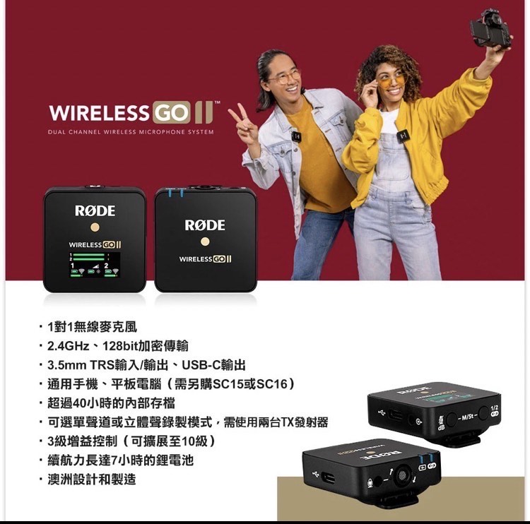 【RODE Wireless GO II】 一對一 微型無線麥克風