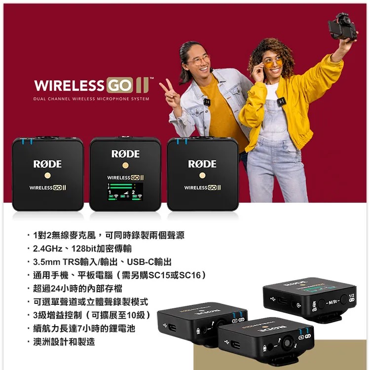 【RODE Wireless GO II】2代 一對二 微型無線麥克風