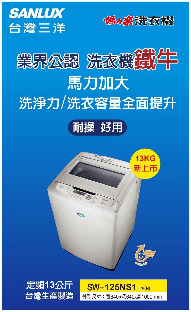 台灣三洋 單槽洗衣機 SW-125NS1