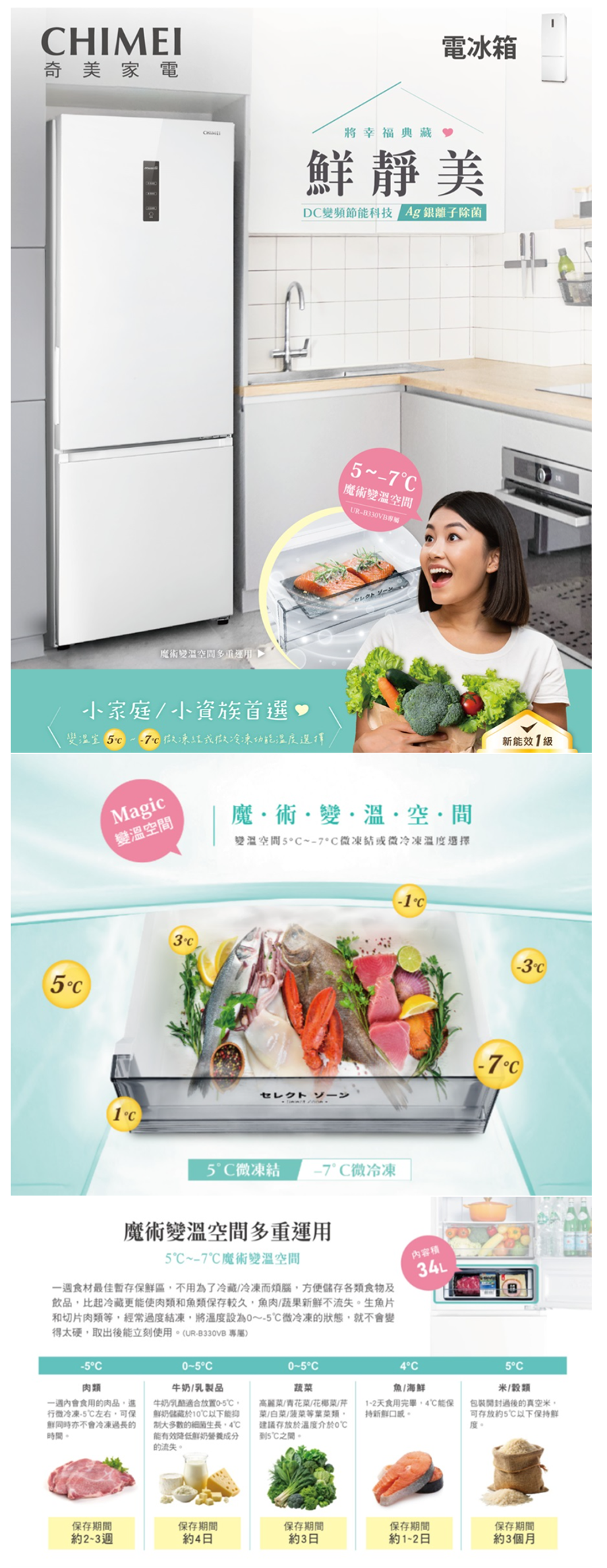 奇美變頻雙門電冰箱 UR-B330VB 魔術變溫空間