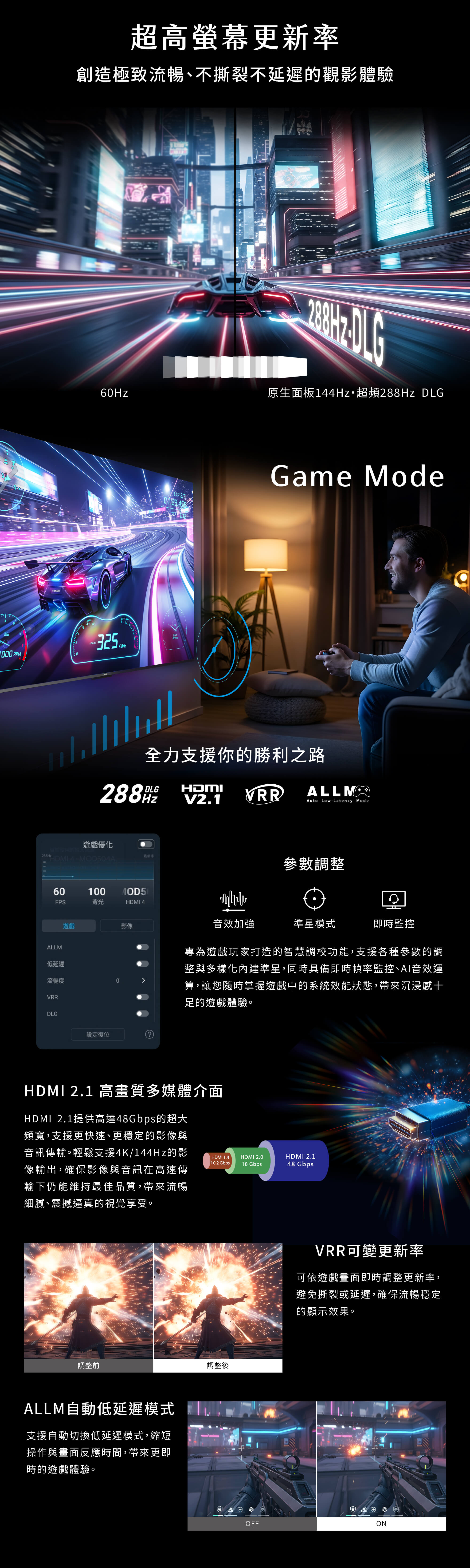 ● 原生144Hz面板 支援288Hz DLG超高更新率