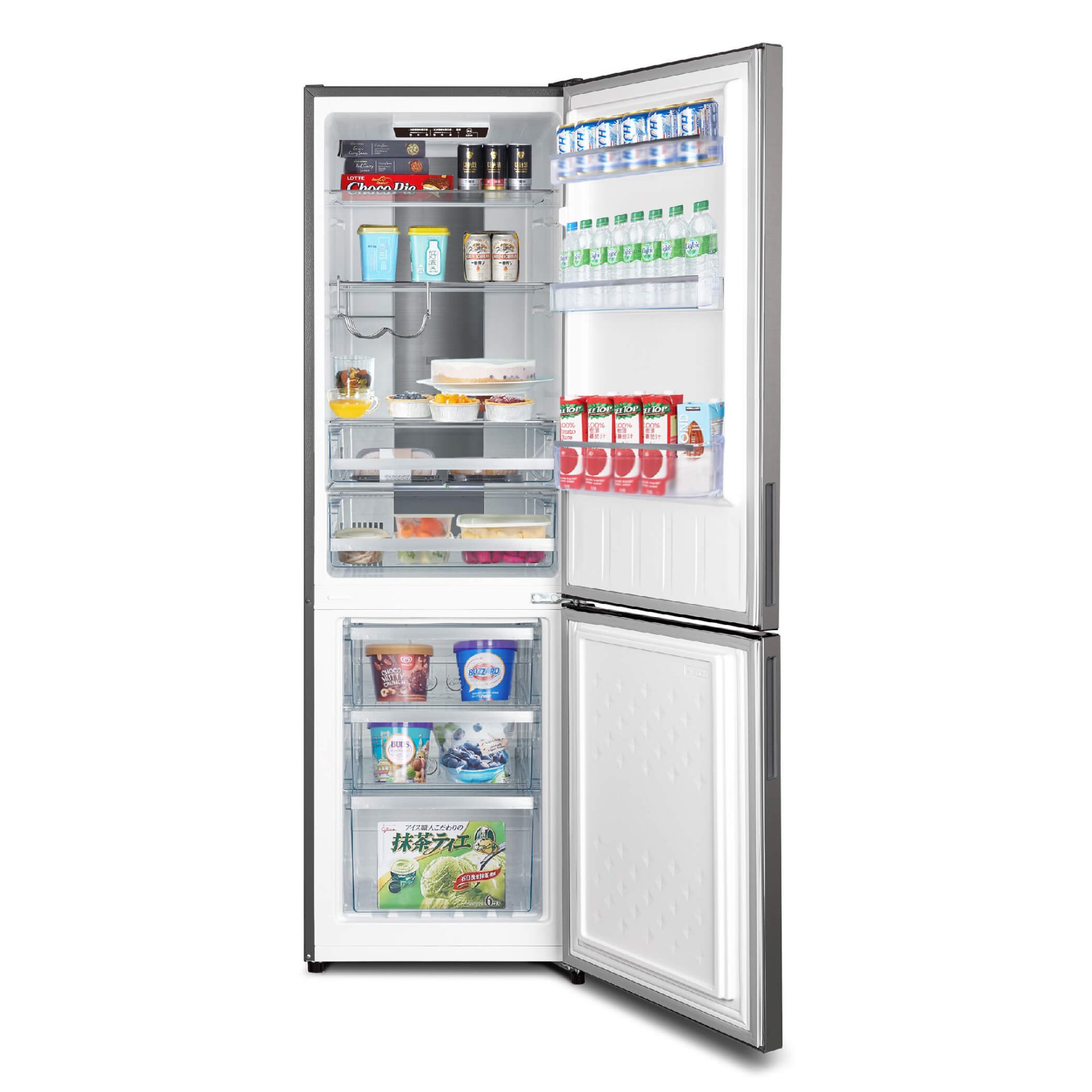 ● 上冷藏下冷凍 ● 急速冷凍功能 ● 節能壓縮機 ● 隱藏式把手設計 ● 左右開門設計 ● Metal cooling ● 多風道設計
